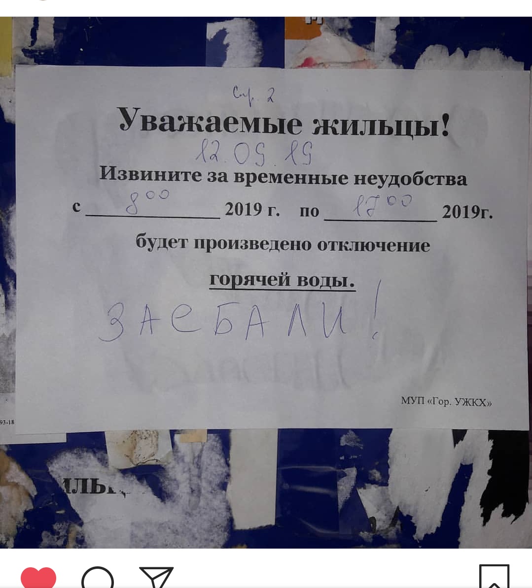 Температурные показания горячей воды можно снять дистанционно через приборы учета ГВХ, которые установлены на дом. Только работники МУП не хотят это афиширошировать. Удобно типа мы приходили Вас не было дома; диспетчеру звонишь: да Вы что, а мы не знаем, заявку обязательно передадим наладчикам и т.д. На заявление об отсутствие горячей воды (тоже бежала ниже 45 градусов), которое писала через электронную приёмную городской администрации, пришёл ответ где были предоставлены температурные показания поступаемой горячей воды в дом снятые с приборов ГВХ. До этого также месяц маялись: днём вода есть, вечером во время большого водоразбора нет воды (чуть тёплая). Устранили в течение 3 рабочих дней. Сообщение отредактировал Elvira - 12.9.2019, 10:42 |
