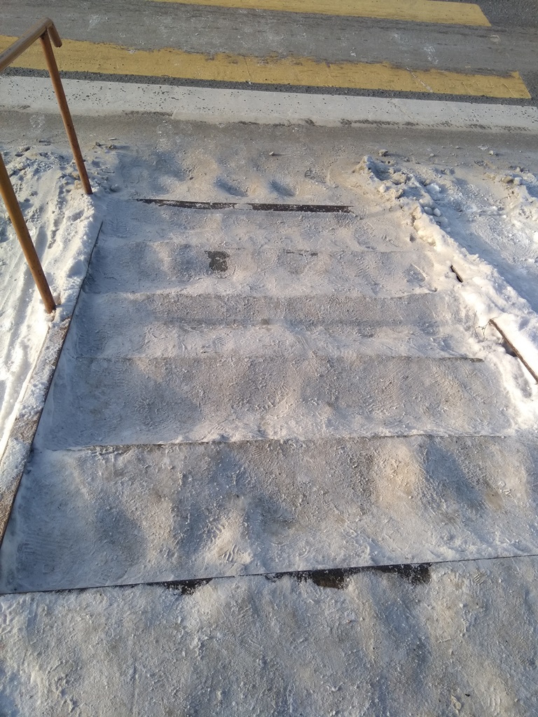 Оказывается нас тут читают верхдержащие. Почистили все лестницы к пешеходным переходам, почистили просто спуски по лестницам, посыпали керамзитом. -------------------- Можешь помочь человеку – помоги, не можешь помочь – помолись, не умеешь молиться – подумай о человеке хорошо! И это уже будет помощь, потому что светлые мысли – это тоже оружие!