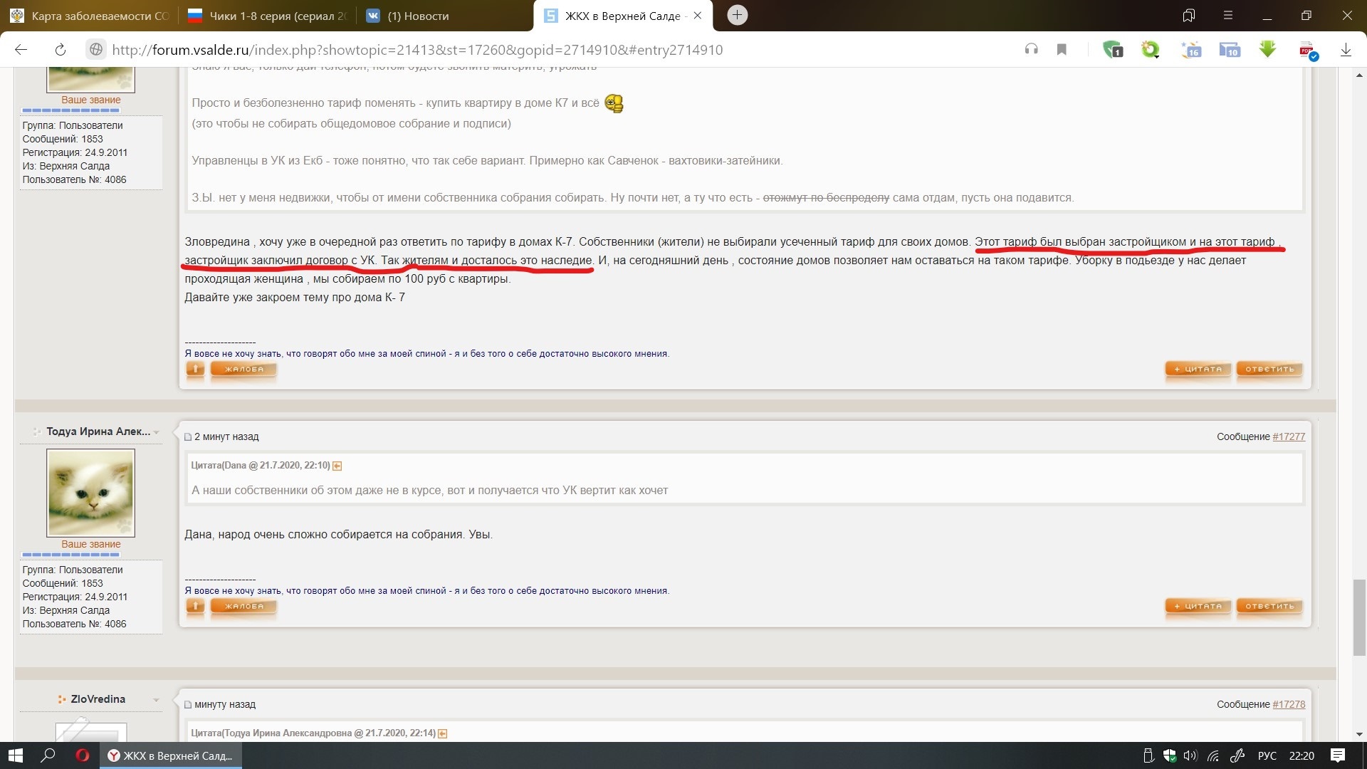 Зловредина бросай в личку свой номер телефона, созвонимся, я тебе подскажу, как поменять тариф на 4,5 руб. Это очень просто. у меня нет лички. админ открутил за плохое поведение Знаю я вас, только дай телефон, потом будете звонить материть, угрожать Просто и безболезненно тариф поменять - купить квартиру в доме К7 и всё (это чтобы не собирать общедомовое собрание и подписи) Управленцы в УК из Екб - тоже понятно, что так себе вариант. Примерно как Савченок - вахтовики-затейники. З.Ы. нет у меня недвижки в салде, чтобы от имени собственника собрания собирать. Ну почти нет. Сообщение отредактировал ZloVredina - 21.7.2020, 22:07 |