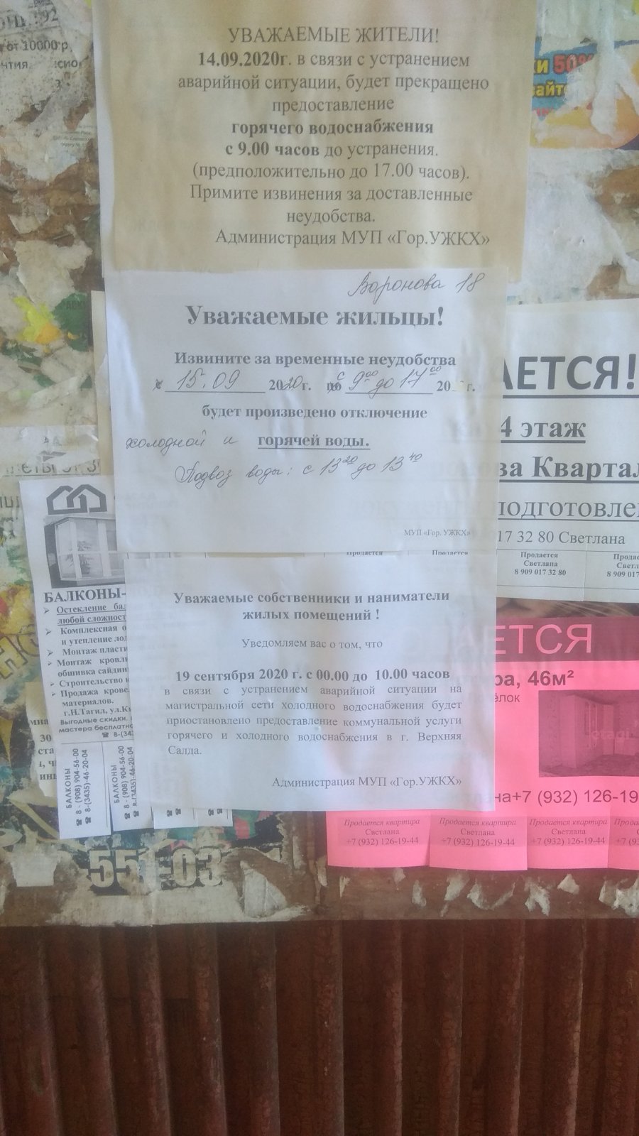 Люди добрые, подскажите куда позвонить? Живу на Устинова 11 к 1 на 4 этаже. У соседа на 2 этаже засорился кухонный стояк, вода не уходит. Он вызвал сантехника, вчера после обеда тот пришел и перекрыл холодную воду, сказал ждать когда дадут горячую воду может там в трубах само все рассосется. Я не понимаю почему сейчас прочистка труб так кардинально решается отключением воды. И когда дадут горячую воду тоже не понятно. Сейчас мне приходится курсировать с тазиком посуды с кухни в ванную, если учесть что у меня трое мужчин в семье и они кушают очень хорошо, мне придется все выходные потратить на это. Диспетчеру ЖКХ.. 5-14-94 вроде.. Если не сделают, то в контору с жалобой. И записи разговоров все записывайте -------------------- Эл. монтажные работы, видеонаблюдение, охранно-пожарная сигнализация, системы контроля и управления доступом, ЛВС..