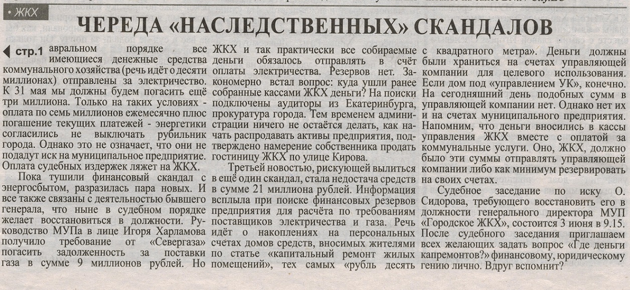 Статья из Биржи новостей от 31 мая 2013 г. про которую здесь писали. Если то что написано - это правда, то я в шоке. Это же так удобно - подвести предприятие к банкротству и потом по дешевке раскупить имущество. В других салдинских газетах (новатор, квант, орбита) есть информация про долги УЖКХ? А то может Биржа опять что-то преувеличивает? Сообщение отредактировал ZloVredina - 2.6.2013, 22:27 |