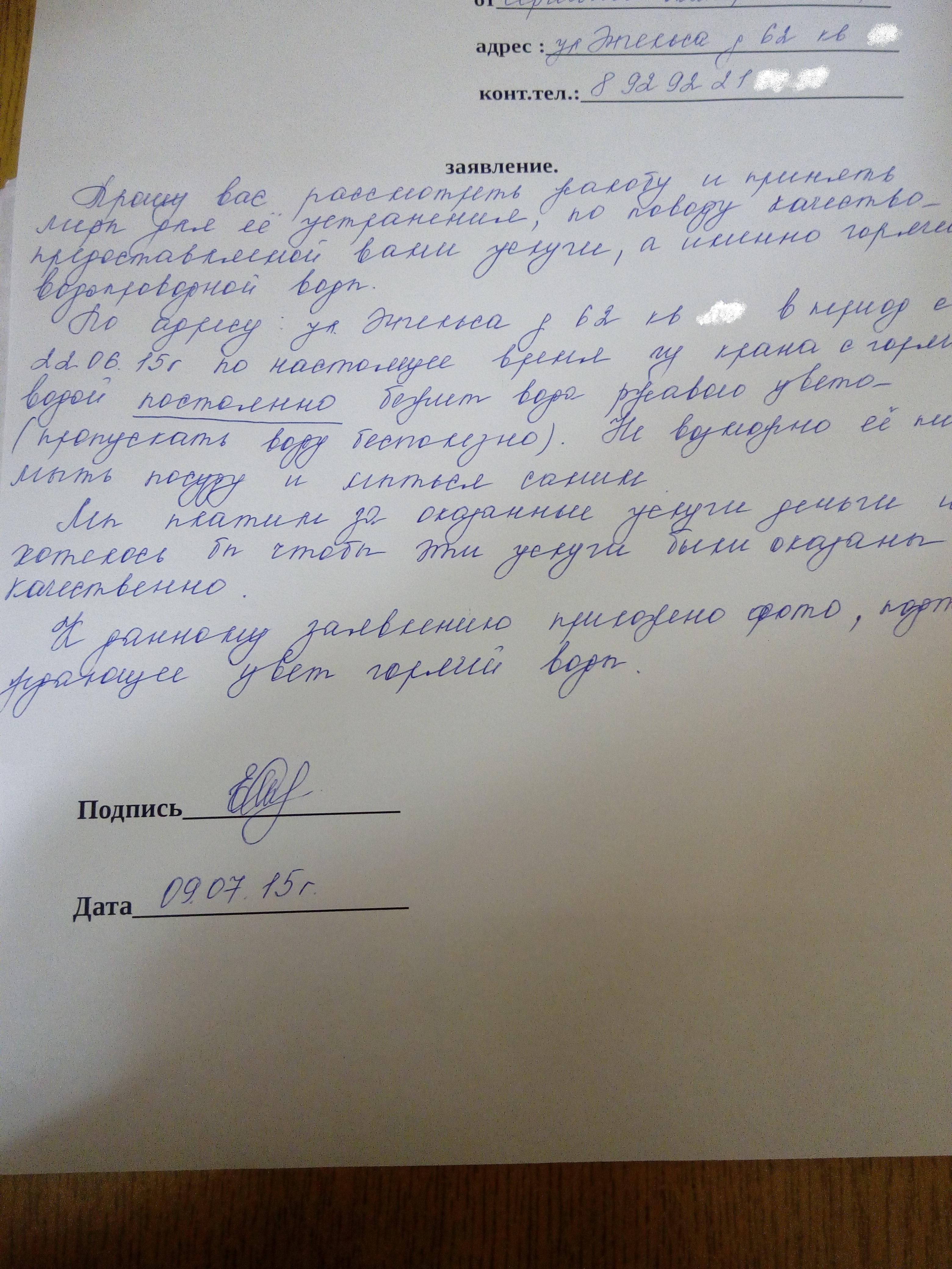 А вот возник вопрос: можно ли написать заявление коллективное в надзорные органы для проведения пересчета за некачественно поставленные услуги? так то вообще жесть. вся это грязь будет забивать трубы, счетчики, фильтры и нагреватели. В случае выхода из строя техники кто это будет оплачивать? +1 , тоже считаю что надо писать выше , цены поднимают ,а качества нет! -------------------- http://vk.com/avtosalda дороги города и многое другое !