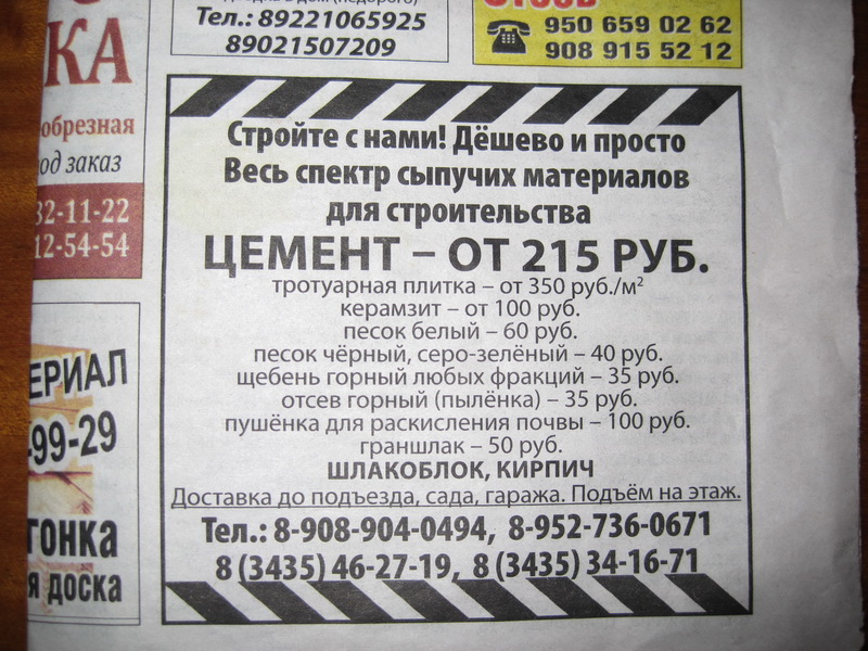 Заказали известь пушонку в мешках в огород вот по этому объявлению в "Новаторе". Решили раскидать, а там ... Короче, не советую связываться. Выкладываю фото обьявления, что бы горожане знали "героев". Тоже как то заказывали у них пушёнку в мешках. На 90 процентов песок. А цемент у них нормальный, только не 215 рублей. -------------------- 100174