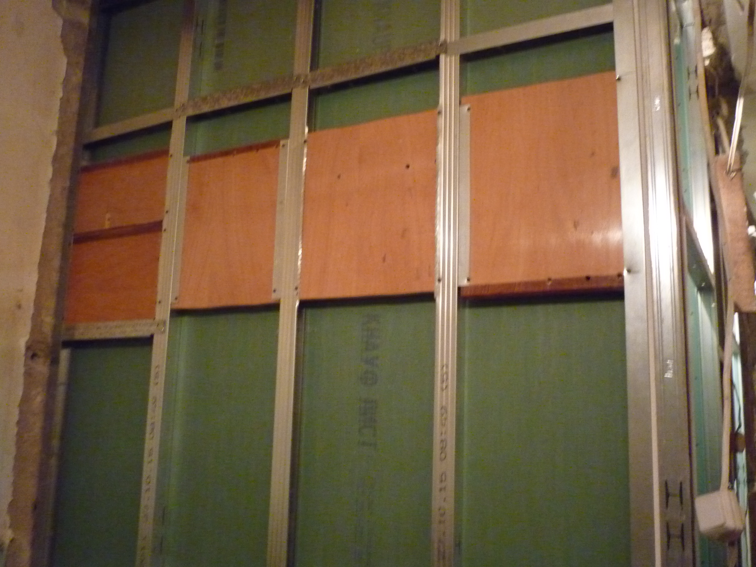 Ставим стенку, которая отделяет туалет от кухни... ... ибо стена пустотелая, поэтому сразу монтирую так называемые "закладные"... а как же звукоизоляция ? в пустоты ничего не укладываете ? а для ГКЛ есть спец "бабочки", на случай подвеса шкафчиков без заранее спланированных закладных ![]() ![]()