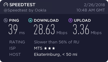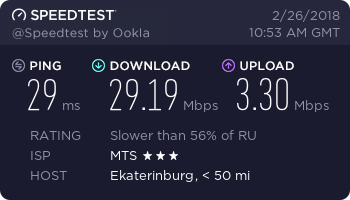 Сети Тагила без роутера выдает днем 20-30 мб ночью 56 мб за 498 рублей в месяц считаю это достойным вариантом!)