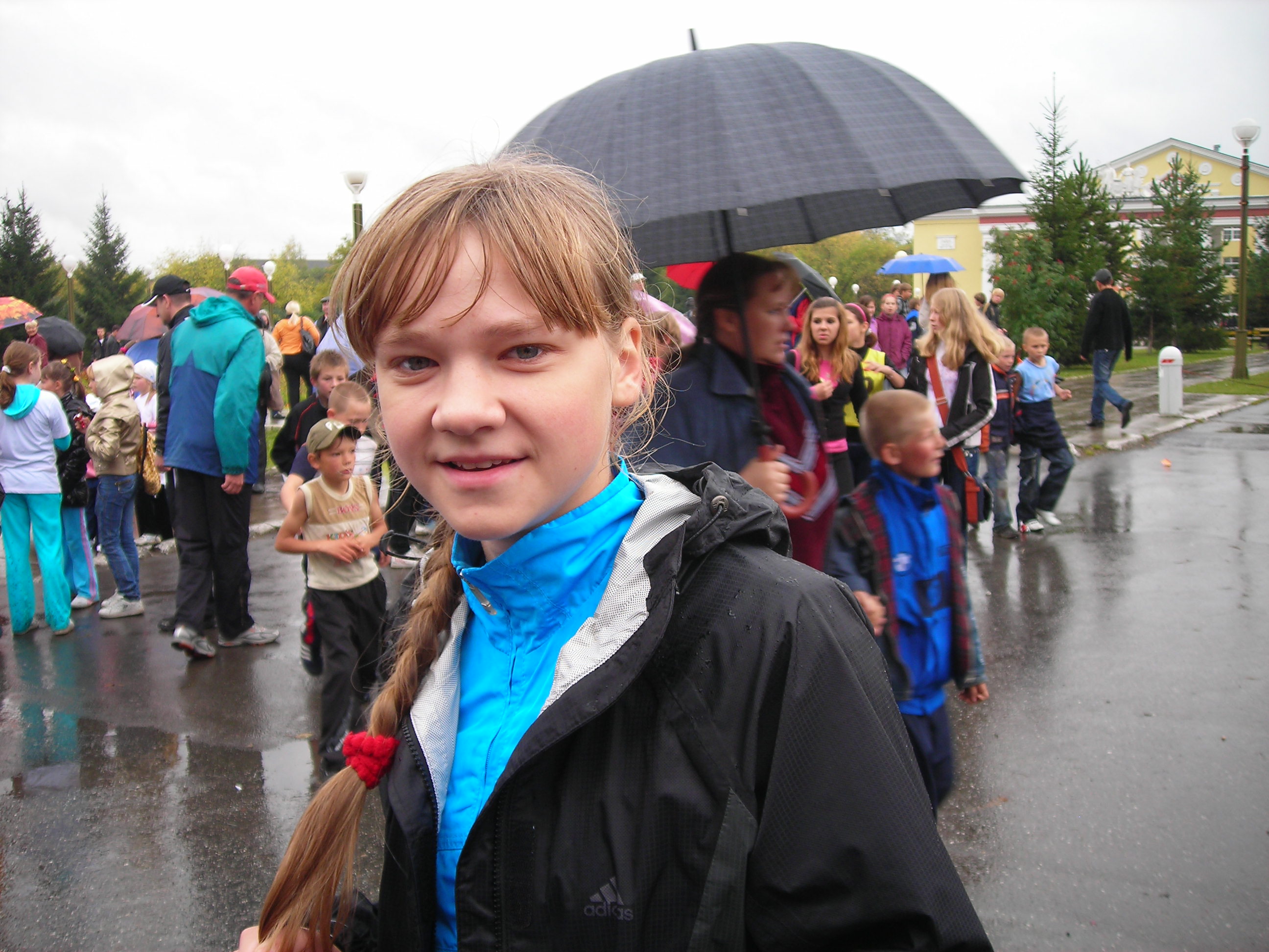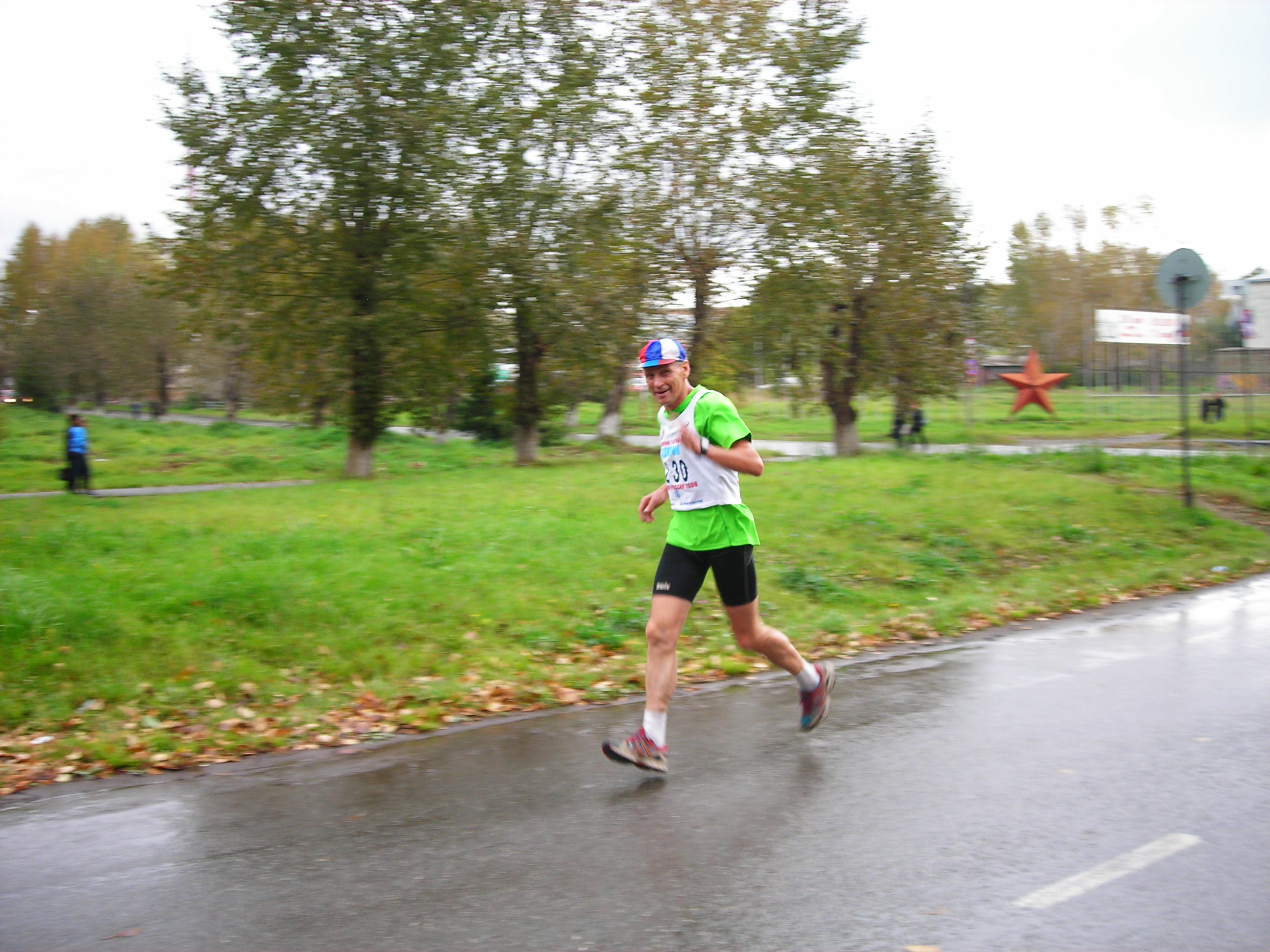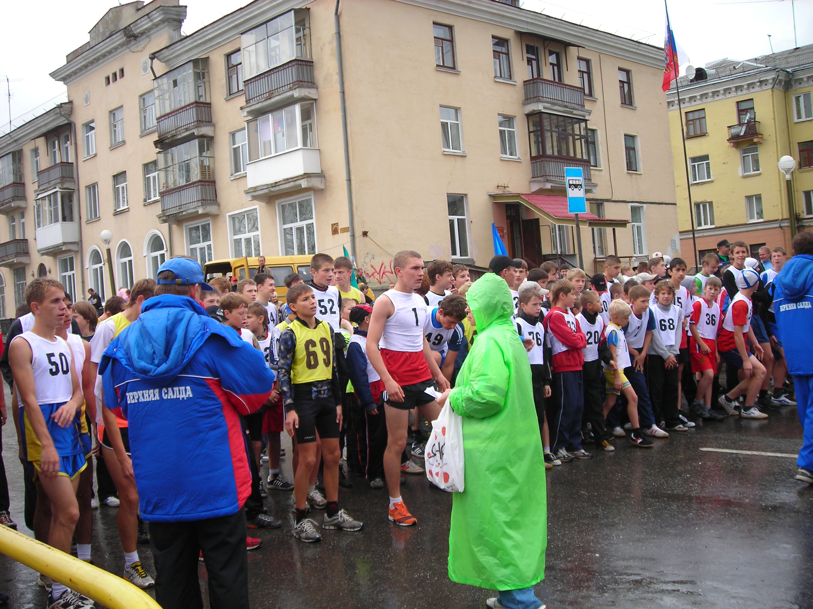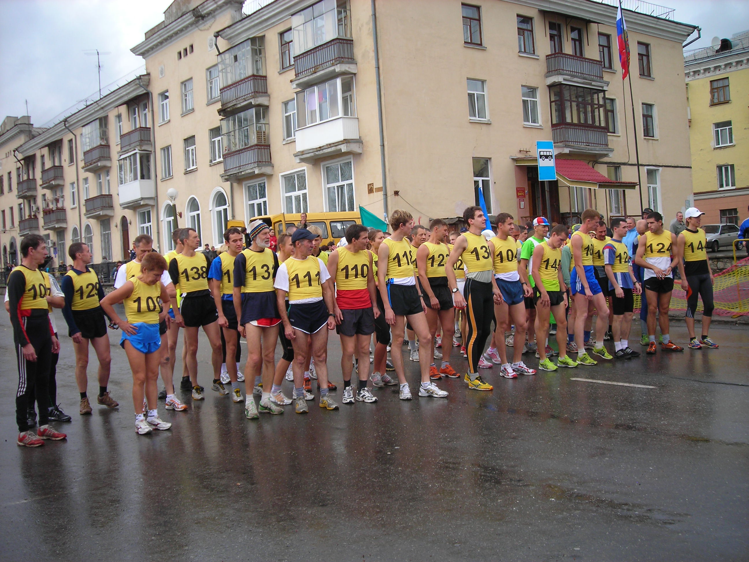 Не было футболок с номерами... не федеральный уровень...? Хуже от этого кросс не стал. Удивляющиеся прохожие, как всегда, переходя дорогу на полусогнутых, делали замечания устроителям:"Чего выгнали людей в дождь?" Среди бегущих, естественно, не было подобных настроений... Кросс удивителен: участвали целыми семьями(семья Рудовых даже в профессиональном), болели целыми классами, милиция и то была из мастеров спорта(Александр Камелин), а ветераны спорта вообще все явились как миленькие(Виктор Стремоусов и компания)... |