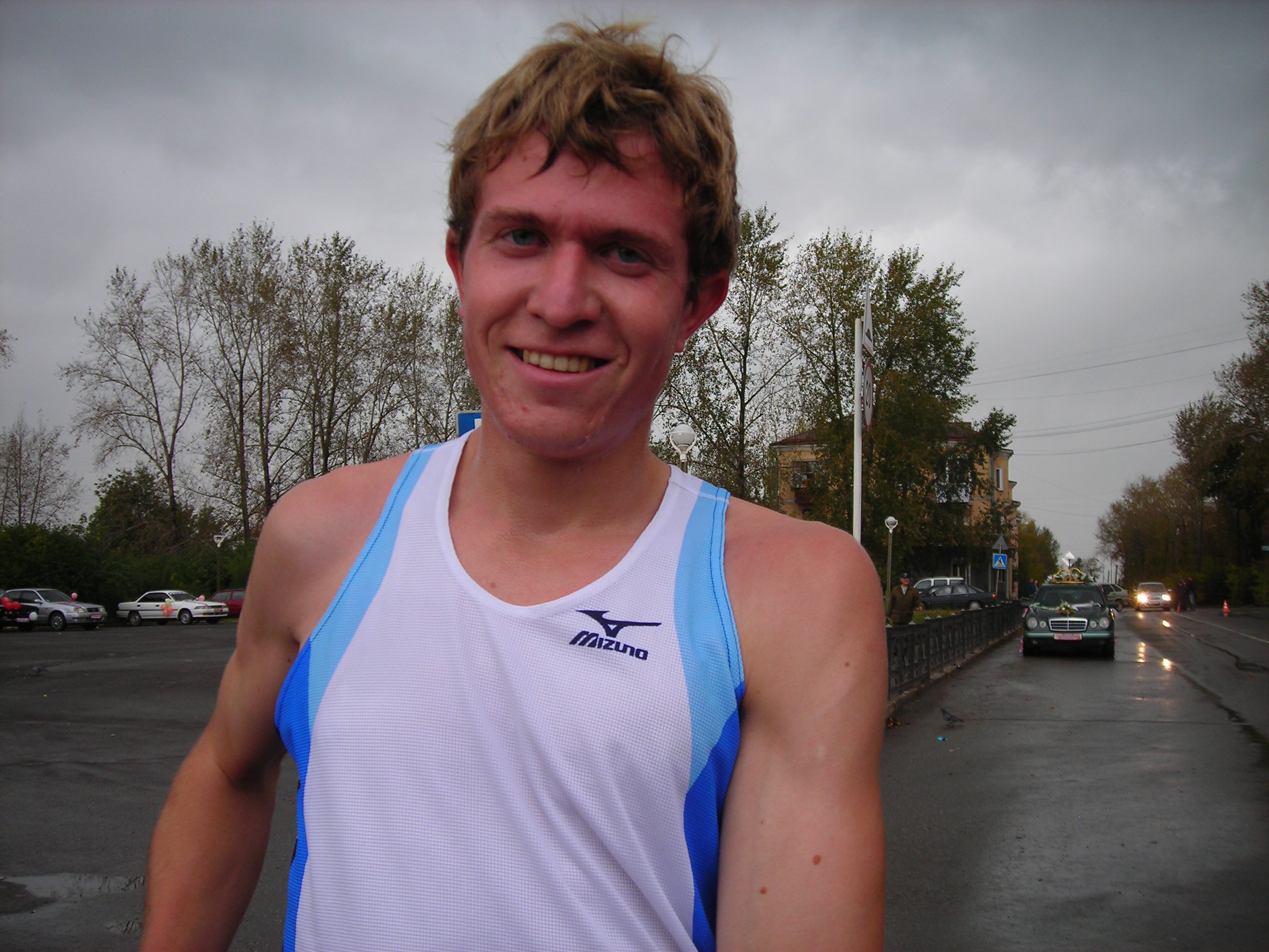 Не было футболок с номерами... не федеральный уровень...? Хуже от этого кросс не стал. Удивляющиеся прохожие, как всегда, переходя дорогу на полусогнутых, делали замечания устроителям:"Чего выгнали людей в дождь?" Среди бегущих, естественно, не было подобных настроений... Кросс удивителен: участвали целыми семьями(семья Рудовых даже в профессиональном), болели целыми классами, милиция и то была из мастеров спорта(Александр Камелин), а ветераны спорта вообще все явились как миленькие(Виктор Стремоусов и компания)... А кто выйграл на 10 км? |