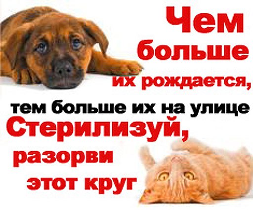 Хочешь помоч бездомным животным? Стерилизуй домашних!!! А на место убитых собак, всегда придет другая, которую так-же будут подкармливать и она так-же наплодит целое стадо!!! А то что у гаражей теперь бегают щенки, ниуж никто не видел беременную собаку, можно было утопить щенков и небыло бы проблем!!! Сообщение отредактировал Улиточка - 9.4.2016, 21:41 -------------------- Улиточка