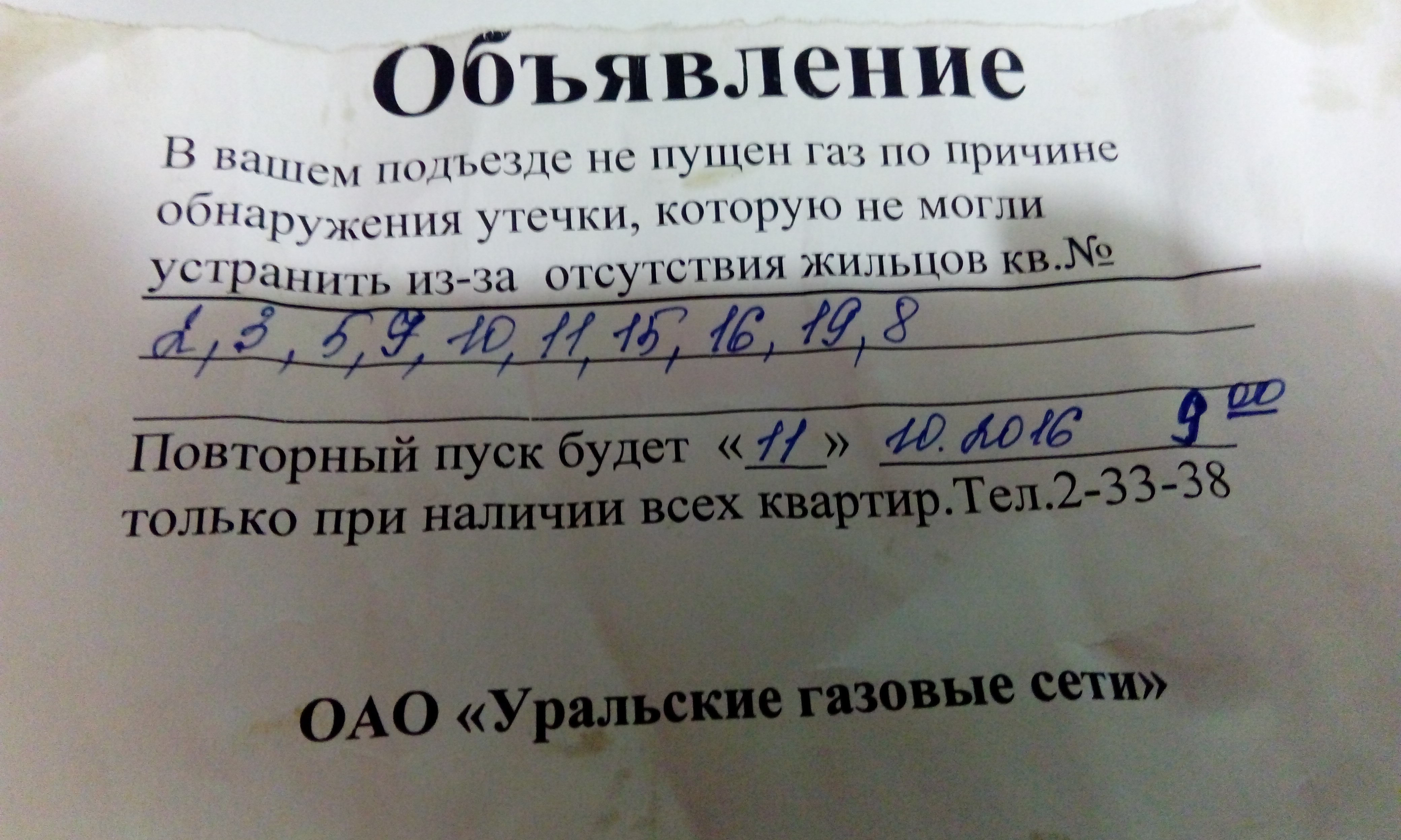 У нас за 14 школой на дверях такое же объявление, только 11 числа. Они все дома решили обойти за несколько дней. Это уже странно, точно развод какой-то. нет что бы в выходные все это дело провернуть дак нет в будни когда все работают На нашем подъезде весит. Я так понимаю это обман, завтра позвоню в наш горгаз и узнаю. На номер телефона внимательно смотрите!!!! Код Салды 34345, а здесь свердловский!!! Телефоны ГОРГАЗа 04, 2-37-46 (диспетчер) и вроде 2-23-08 мастер ВДГО (не уверен, но вроде так ) На другом объявлении все реально, стоит подпись ГАЗЭКСа , договоры заключают с теми, у кого они еще не оформлены, оплатить можно потом в кассе! или у слесарей, они сейчас ходят с с кассой и вроде даже с переносным терминалом (безнал с банковской карты) Цитата Горгаз работает на пятидневке, по выходным только аварийка. Цитата Все дома за несколько дней не обойти, работа плановая, все по графику! сегодня дин район, завтра другой, и так круглый год....
