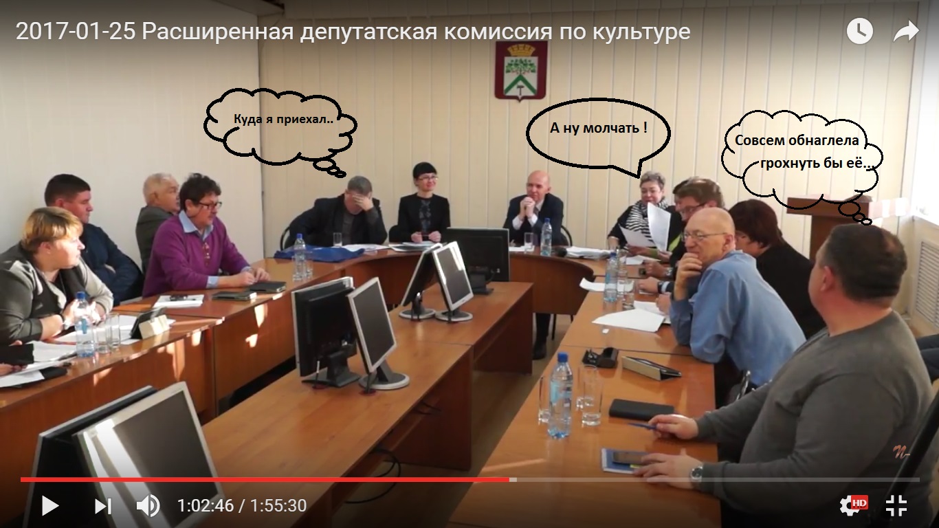 Расширенная депутатская комиссия по культуре. Директор Кедра поднимает руку в ответ на просьбу поднять руку тех , кто за минувшие 2 года хотя бы раз был в библиотеке . "Мамка" его высмеивает . Экономист управления культуры спрашивает " А что такое за неуважение ? Непонятно.." Мамка в ответ: "Лучше помолчите, мадам..." и продолжает хихикать. Экономист " Это уже хамство получается.." Мамка " Вы мне замечания не делайте " ... https://youtu.be/MsJ_pE13d-U?t=3756 Сообщение отредактировал dominik - 29.1.2017, 6:45 |