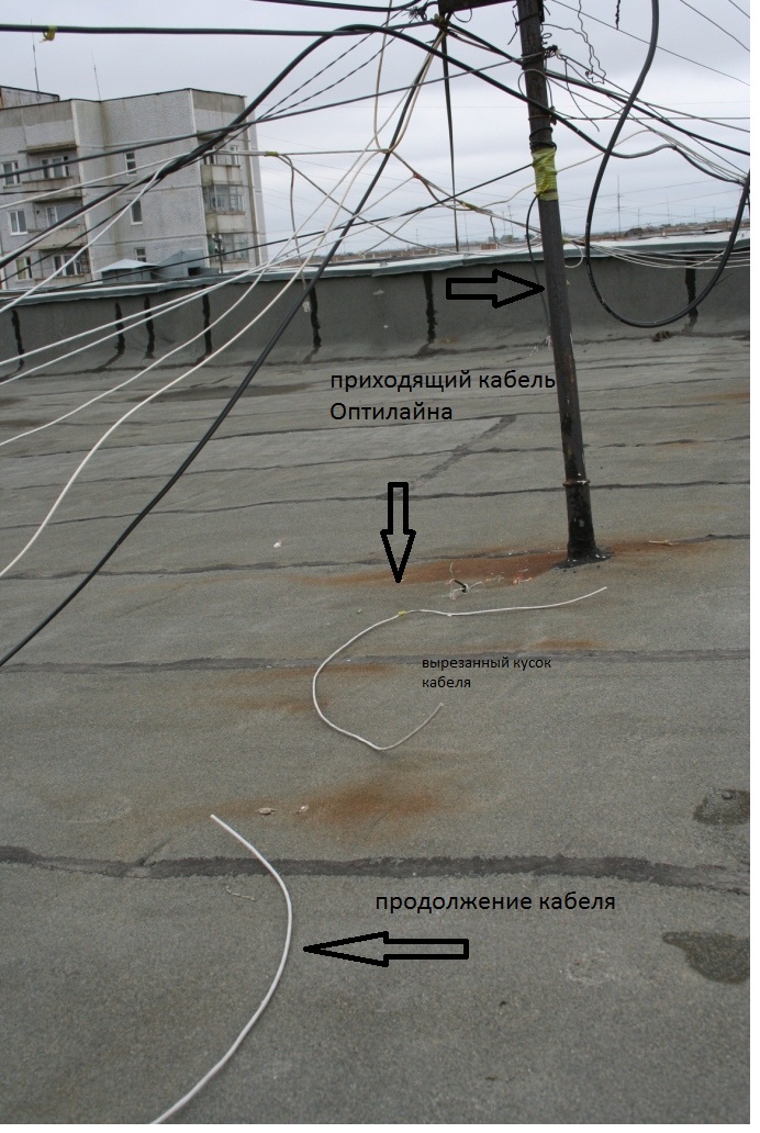 Еще одно фото, для полного комплекта: А теперь подробности, чтобы не было непоняток! Не знаю как, но какая-то *умная* голова воткнула все провода, Квантовские и Оптилайновские, в один свич, из -за чего легли обе сети! (Скорей всего, один из свичей был украден, и чтобы не вызывать явных подозрений, все заткнули в один) Что делают ремонтники? Вместо того, чтобы просто выдернуть провод, отрезают коннектор у свича, перерезают повод на крыше, и выстригают дополнительно кусок, чтобы нельзя было соединить!!! Причем, всех Оптилайновских клиентов оставляют в в своем свиче.... -------------------- Главным недостатком интернета является то, что он позволил идиотам общаться с нормальными людьми...(С)