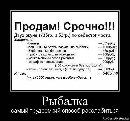 Класс! Я мужу иногда тоже себестоимость рыбы считаю)))) Но хобби это замечательно. Рыбачьте мужики! (Ну и на женские нужды жёнам конечно не забывайте).