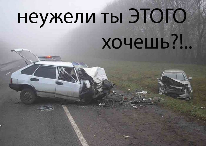 Всякие там акции, конечно, ничем не помогут. Зато народ неплохо развлекают. А некоторым позволяют поставить галочку в списке мероприятий Может немного поможет это. Детям и слабонервным не смотреть!!! http://www.porjati.net/accidents/4607-zhertvy-dtp.html http://www.porjati.net/accidents/4731-muzh...tp-popolam.html http://www.porjati.net/accidents/4561-dtpuzhasno.html Примерно так вы будете выглядеть, обгоняя очередную машину, лихачи гребаные. я повторяю, народ который развлекается. может идти дальше мимо! |