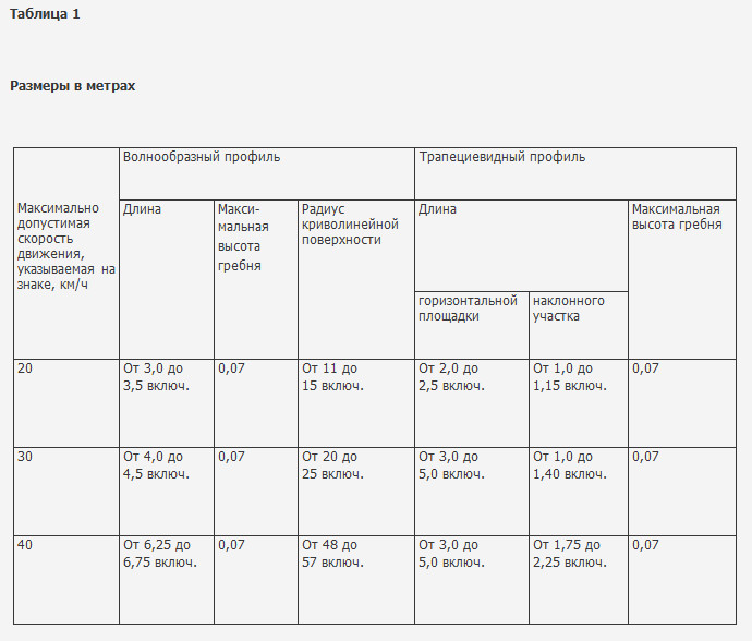 Здравствуйте. Строителям были выданы размеры искуственных неровностей строго соответствующие ГОСТу. Возможно у Вас внесены изменения в конструкцию автомобиля (самовольно обрезаны пружины) как сейчас это принято у любителей скоростной езды. Строителям может и были выданы размеры по ГОСТ, но были ли они соблюдены? Кто проверял??? Какова высота гребня??? Каков радиус??? Длина??? Люди, сделайте замеры и выложите цифры. Может и вправду все нормально или кто то накосячил. НАЦИОНАЛЬНЫЙ СТАНДАРТ РОССИЙСКОЙ ФЕДЕРАЦИИ Технические средства организации дорожного движения ИСКУССТВЕННЫЕ НЕРОВНОСТИ Общие технические требования. Правила применения пункт 4.2.3 Параметры ИН следует принимать исходя из максимально допустимой скорости движения на участке дороги, указываемой на знаке, в соответствии с таблицей 1. Сообщение отредактировал OZON - 4.7.2012, 21:08 -------------------- «Будь голодным, будь глупым», Стив Джобс