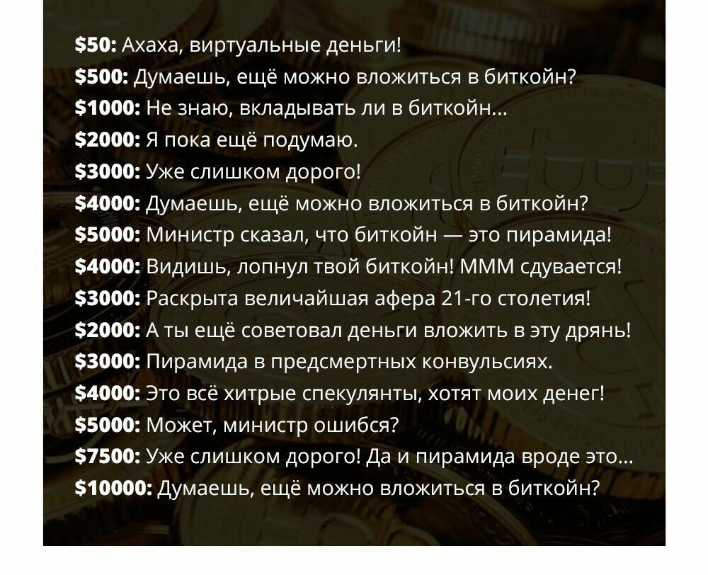 Мне жена говорила о биткоин еще когда он стоил еще 6000 рублей, я так же как и вы ( эксперты ) не поверил, сейчас в бизнесе, и вот результат. Лучше поздно, чем никогда. |
