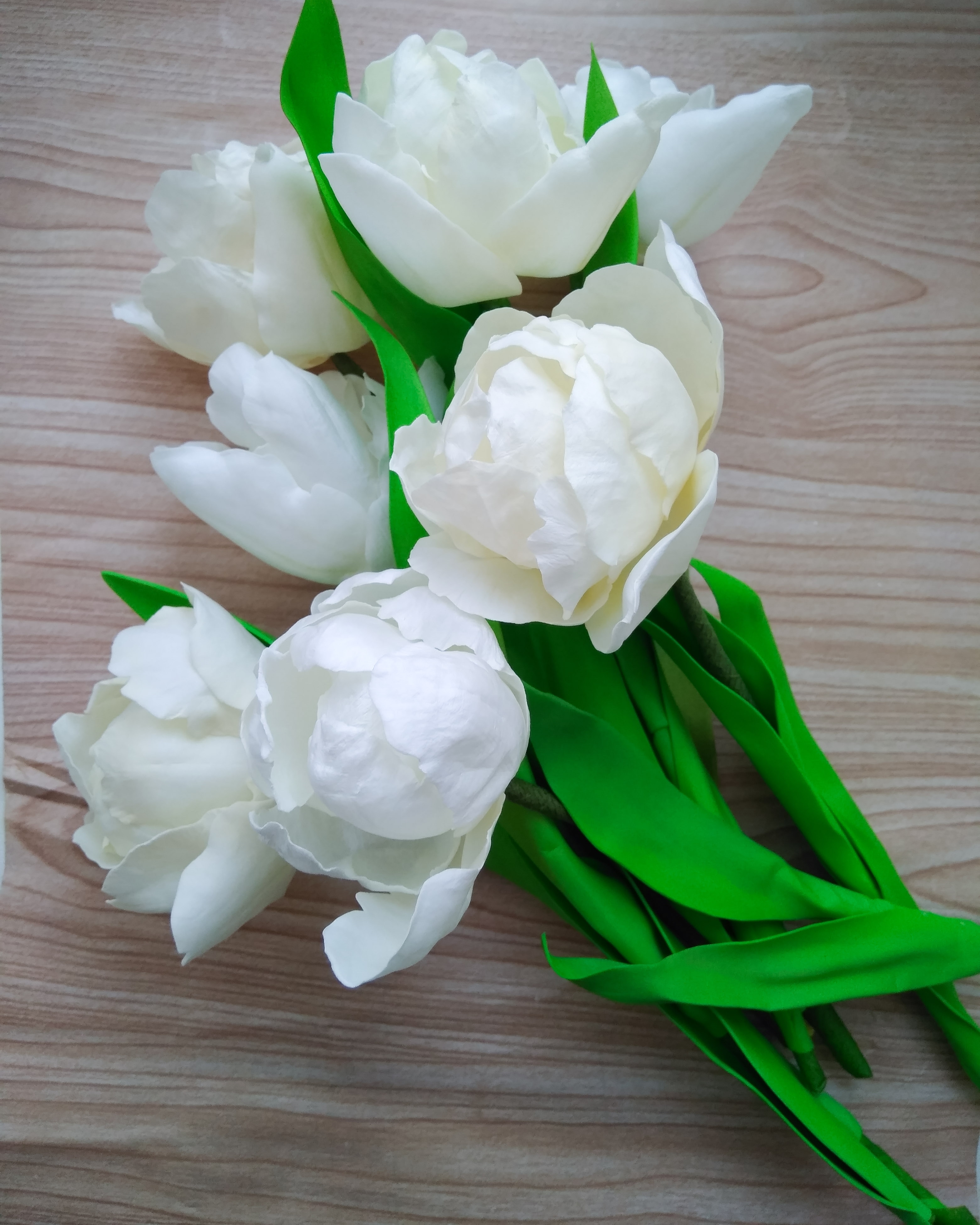 Всем привет! Хочу вам показать свои работы из фоамирана. Фоамиран – это мягкий материал, похожий на замшу, но, по сути, являющийся вспененной резиной. Преимуществом таких украшений является то, что они влагостойки-не боятся воды, дождя снега и тд... Не бояться солнечных лучей,очень легкие, практически невесомые.. Лепестки цветов мягкие и бархатистые, очень приятные на ощупь, не мнутся). И, самое главное, он совершенно не опасен для детей, не выделяет ядовитых веществ, не отправляет организм. Многие люди не могут себе позволить живые цветы из-за аллергии. Обидно, правда? И как круто, когда можно заменить живой цветок его копией. Можно наслаждаться красотой цветов и не переживать,что они скоро завянут. За ними легко ухаживать- периодически смахивать с них пыль. И при этом ни какой аллергии. На фото пионовидный тюльпан. -------------------- http://vk.com/artdaff