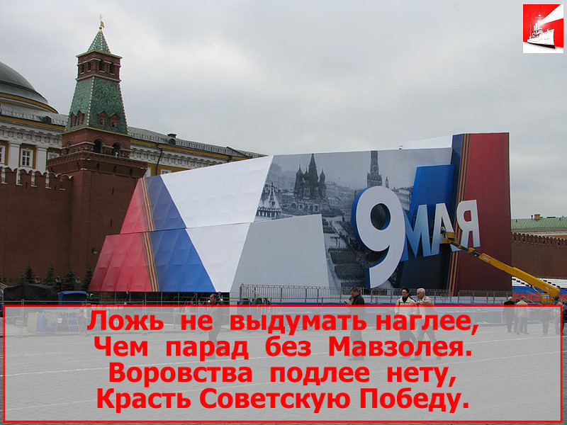 ...Какое отношение мавзолей имеет к девятому мая?. Ленин на тот момент типа давно мёртвым был. если современная рф позиционирует себя преемником СССР, победившим в Великой Отечественной войне и парад 9 мая проводится в честь этой победы, то, как известно, знамена немецких войск были брошены на специальный помост у мавзолея В. И. Ленина. Собственно поэтому мавзолей не следует позорно прикрывать. Если парад проводится в честь некоей иной победы, тогда, конечно, можно и прикрыть. Цитата Марш сводных полков завершала колонна солдат, нёсших 200 опущенных знамён и штандартов разгромленных немецких войск. Эти знамёна под дробь барабанов были брошены на специальный помост у подножия Мавзолея Ленина. Первым был брошен Фёдором Легкошкуром лейбштандарт LSSAH — батальона СС личной охраны Гитлера.