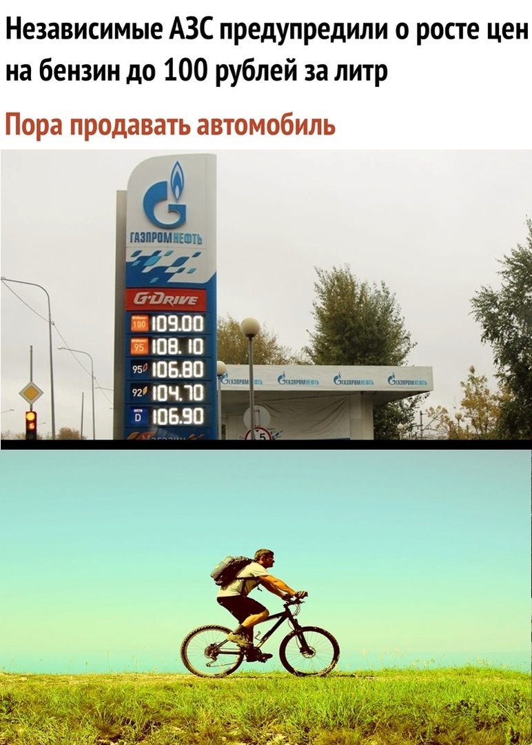 Говорят уже о возможном ценнике на бензин в недалёком будущем в 100 р.Кстати, в "Стекляшке" уже объявление выставлено о подорожании продукции из-за повышения цен на топливо, и как следствие- удорожание некоторых ингредиентов ( речь идёт о выпечке). |