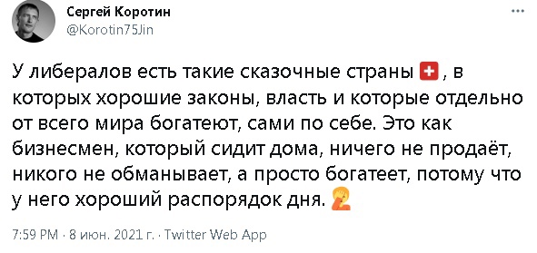 Чего сразу Швеция или Дания? Давай поищем в Бразилии,в Бангладеше,в Сомали,в Колумбии,Мексике,ЮАР.... Да даже в цитадели свободы и демократии каждый день совершается тысячи преступлений,обычный люд осуждают на рабство в частных тюрьмах,убивают полицейские,но толстосумов не трогают.Потому что при капитализме существует диктатура буржуазии. Мне так интересно наблюдать,как человек явно из народа,уже лишённый адекватного пенсионного возраста,медицины и сотен других благ так отчаянно топит за тех,кто этих благ его лишает .Причём ещё отстаивает такую форму капитализма,при которой у народа забирают те жалкие остатки реальных прав,которые он имеет сегодня. Сообщение отредактировал Caesar - 9.6.2021, 13:48 |