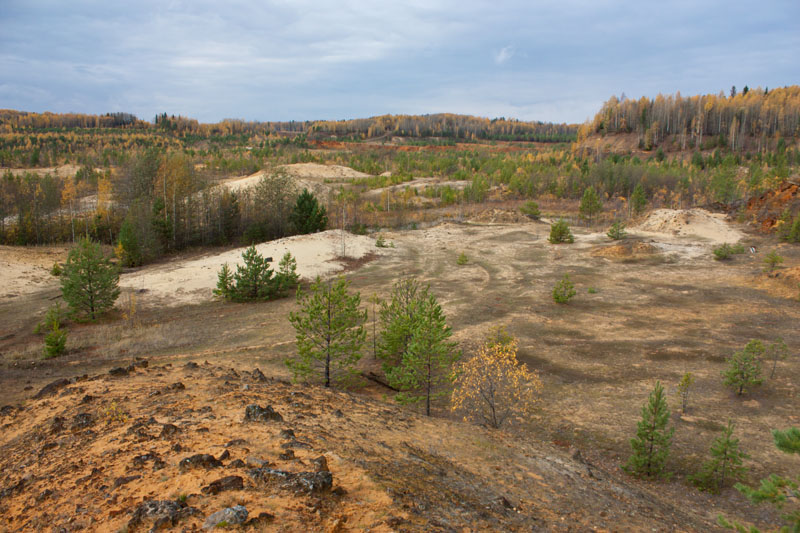 В конце октября в палатке ночевать холодно и сыро. Переночевать в домике или гостинице можно в Оленьих ручьях, или недалеко от них в Ельне. Про нижнюю Синячиху и гору Белую, куда можно съездить за день, наверное все знают. За день можно скататься на Шиловские или Липовские карьеры, походить по отвалам, посмотреть свысока на окрестности. Больше ничего подходящего для конца октября в голову не приходит.