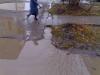 Несмотря на сделанный несколько лет назад ремонт, после дождей и во время таяния снега пешеходный переход залит водой по колено. С ребенком и коляской ходить невозможно. Автобус разворачивается на самом пешеходном переходе. Пассажиры, когда садятся в автобус на остановке, перекрывают проход на тротуаре. А что мешает: 1) перенести автоусную остановку чуть дальше от перехода. 2) закрыть проезд машин между 17 и 19 домом - ведь они там по грязи ездят. |