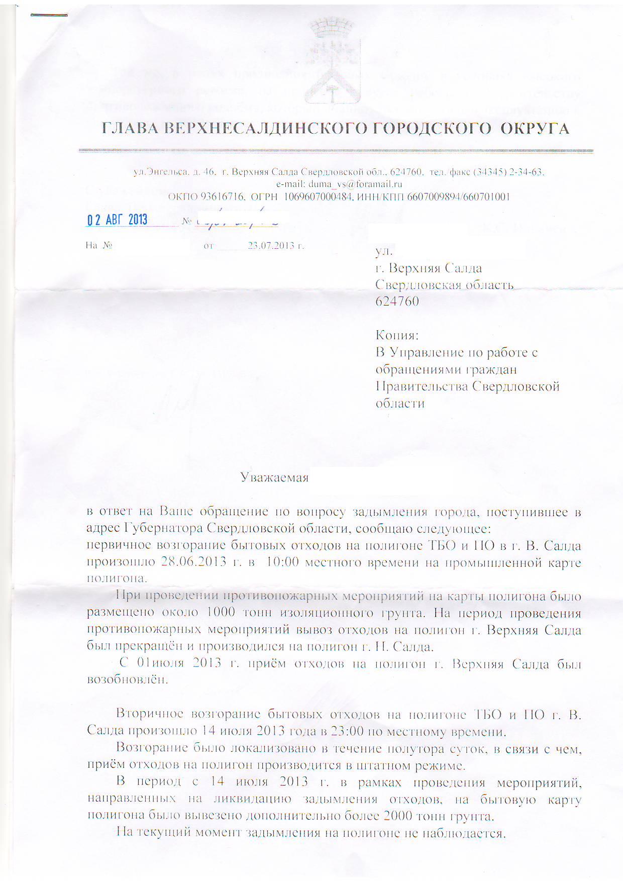 спешиал фо Сем написал, когда произошло возгорание первый раз (28.06.2013 в 10:00 z_2.gif класс, даже время точное знают), что привезли 1000 тонн грунта (не написал когда и через сколько недель), что мусор стали возить в Нижнюю. 1.07.13 снова приём мусора возобновлён. вторичное возгорание 14.07. в 23:00 и локализовали его за 1,5 суток с 14.07 же (далее он хвастается, какие они молодцы) привезли 2000 тонн грунта теперь ведутся работы по созданию противопожарного водоёма и закончатся в конце августа 2013 А тебе точно ответ из администрации прислали, а не статью из газеты Квант? Там точь в точь тоже самое |