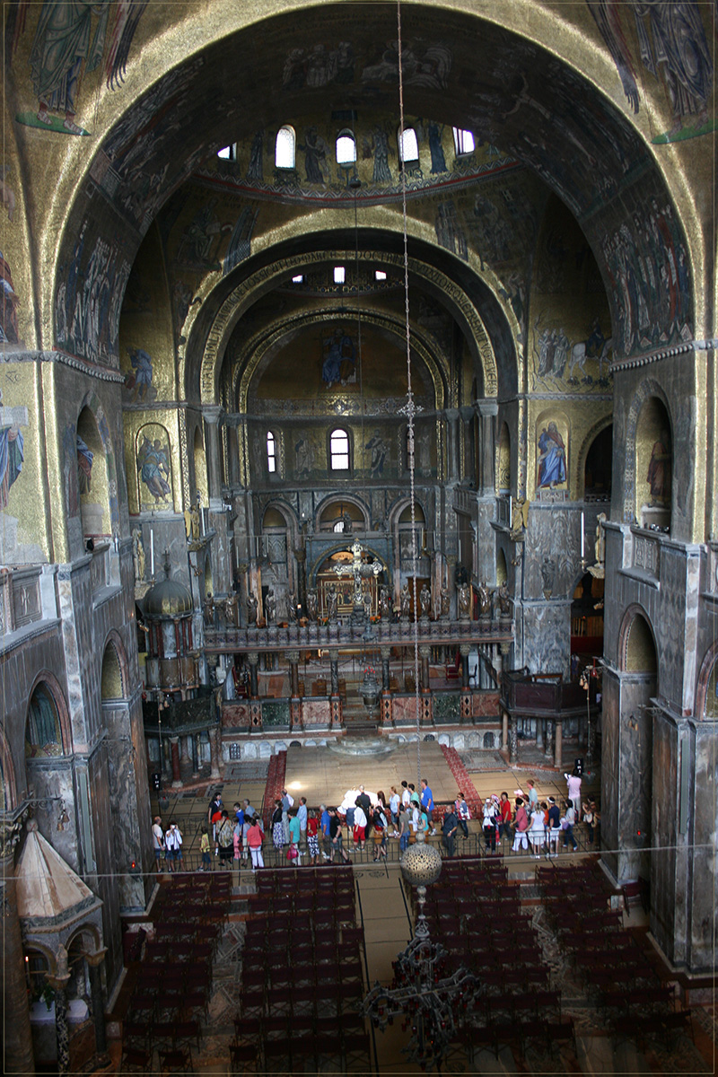 [attachment=146506:2012_06_..._800_10_.jpg]Собор Святого Марка (Basilika San Marco) — здание в византийском стиле, обрамляющее площадь Сан Марко. Это, пожалуй, самый посещаемый туристами собор Венеции. История создания этого храма связана с легендой, согласно которой в 828–829 годах мощи евангелиста Святого Марка были выкрадены двумя венецианскими купцами и тайно привезены из города Александрия в Венецию. Эта сцена получила отражение на одной из мозаик, украшающих стены базилики. В 832 году была освящена первая, построенная на этом месте, базилика Сан-Марко, которая вскоре была уничтожена пожаром. На ее месте в 1063 году возвели новую базилику. В 1075 году правящий тогда дож издал указ, согласно которому все корабли, приходящие в Венецию из дальних стран, должны были привозить дары для Базилики Сан-Марко. Венецианцы, опасающиеся, как бы александрийцы не потребовали вернуть мощи святого, в 1094 году объявили о чуде: в базилике, носящей его имя, неведомо откуда появились мощи Святого Марка. По этому поводу была отправлена церковная служба, базилика была вновь освящена, а в городе начались праздничные народные гуляния. Вскоре Базилика стала политическим и религиозным центром Венецианской Республики: здесь короновали дожей, отсюда их отправляли в последний путь, отсюда же уходили в дальние плавания прославленные капитаны, в том числе и Марко Поло, здесь собирался венецианский народ в дни несчастий и в дни праздников. Для постройки храма использовали десятки тысяч свай из лиственницы, которая при соприкосновении с водой каменеет и долго не портится. Сваи забили под фундамент, а фасад собора украсили мрамором, привезенным из Константинополя в 1204 г. Главный портал Базилики Сан-Марко украшен романской резьбой (1240–1265 годов), а пять арок обрамлены роскошными мозаиками. Внутренне убранство собора привлекает внимание мозаиками ХII-ХIII столетий, некоторые из которых позже были заменены шедеврами Тициана и Тинторетто. Сообщение отредактировал MaxM1970 - 10.1.2014, 0:27 -------------------- Улыбайся сегодня, завтра будет хуже.