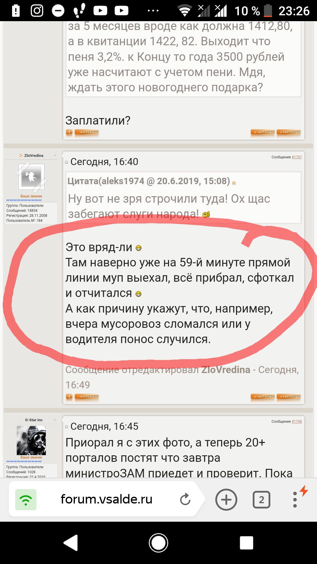К сожалению модератор прав, завтра, когда СМИ проедут по городу, то будет все отлично, хотя контейнеров должно быть не больше 5, площадки не должны находится рядом с детскими площадками и местами отдыха. Я обращался в прокуратуру много раз и результат был нулевой, я обращался к местному депутату Котову, результат был нулевой. Писал обращения на имя губернатора и оно переадресовывалось местным властям, которые не делали ничего. И вот отличный, замечательный человек обратился к Путину. В городе свершилось чудо. Ни прокуратура, ни ГЖИ, ни Роспотребнадзор не решали данную проблему. Даже МЧС не могли повлиять, ведь данные завалы пожароопасны. Никто ничего не хотел делать из местных и областных чиновников. У меня есть куча переписки. Когда я общался с Рифеем, как оказывается их задача вывезти мусор и за это собрать с населения деньги, ну а уборкой мест сбора ТБО это вотчина городских властей, кстати на это деньги заложены в сборе. Но как видите местная власть, видимо, расходовала их по не назначению. Или, возможно, есть договор с организацией, которая его не выполняла и не выполняет. Сегодня я задал вопрос работникам МУП, кто же их заставил заниматься тем, что они, как уверяют, делать не должны. Ответ был замечательный, совесть и делают они это добровольно. Молодцы, спасибо им за чистоту в городе. Вот есть у меня вопрос к нашим депутатам, к мэру, какого х.... куда Вы все смотрели!? Когда говорили о комфортной среде? Как вы все, депутаты и мэр и чиновники вместе взятые, будите после такого смотреть в глаза людям? Имена ответственных не называю, надеюсь их уволят. кстати, 4 июня 2019 года наблюдал интересную ситуацию. Все же знают как МУП, который субподрядчик, их техника должна быть оснащена системой ГЛОНАСС. Они подъехали к месту сбора ТБО, постояли всей вереницей и благополучно поехали дальше. Куча мусора осталась!!!! Сообщение отредактировал Сухой - 20.6.2019, 23:03 |