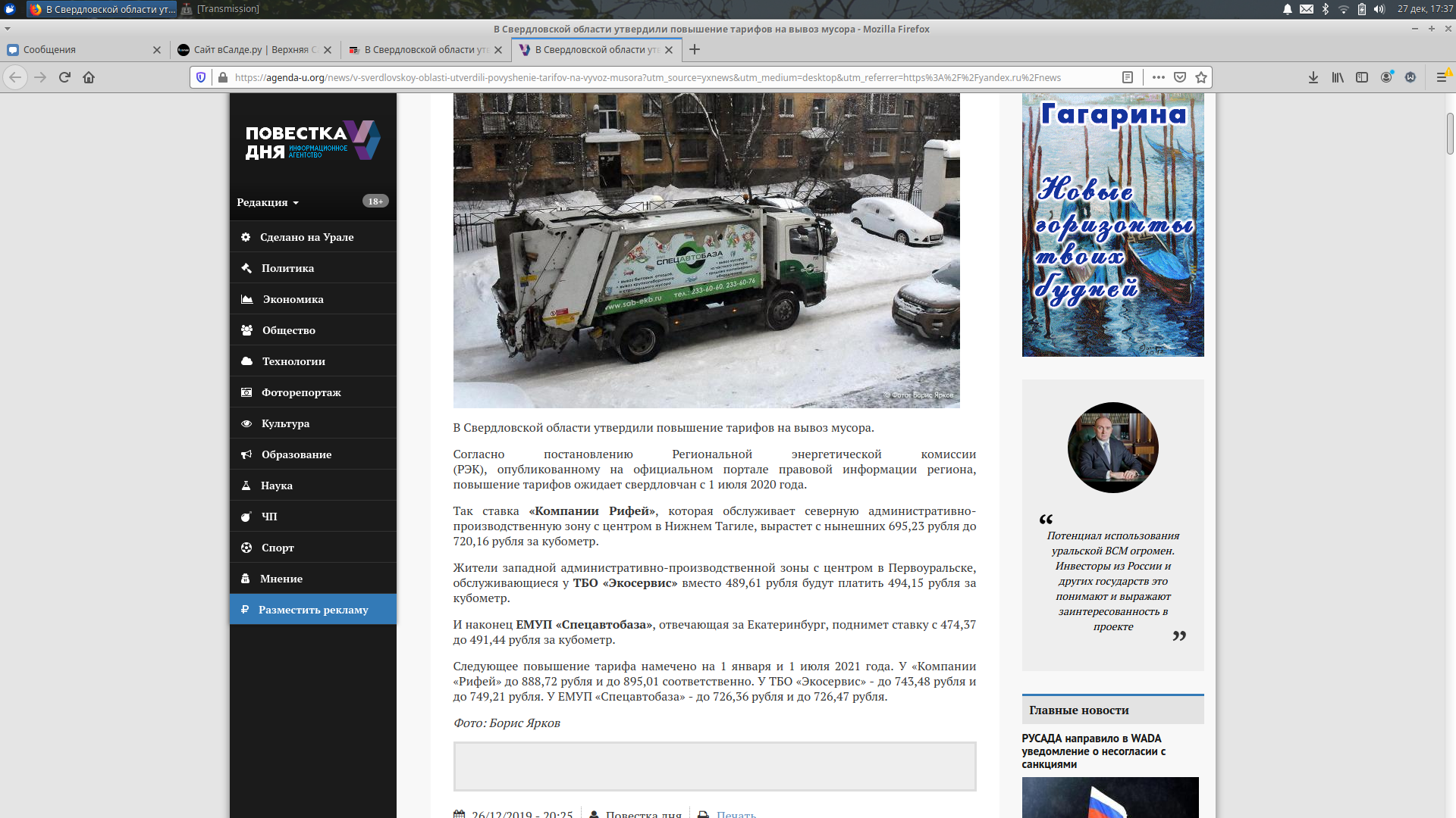 Вот и начался суд по мусорной реформе в Свердловском областном суде - по нормативам - иски от жителей Тагила.....РЭК привлечен к суду..... РЭК пришлось рассказать суду, как формировались нормативы накопления мусора https://www.uralweb.ru/news/society/509707-...iya-musora.html ____ А в Салде-дыре всех всё устраивает, как я понял?? И по}{уй на то, что нормативы завышены и взяты с потолка?? Что наша салдманская администрация либо не подавала нормативы для РЭК, либо с потолка вывела норматив..... Салдамане, вам по}{уй??? Ладно, я понял уже давно, что это город пассивных амеб... Вангую, что сейчас проведут ещё какие-нибудь замеры и окажется, что маленький тариф, ещё в 1,5 раза повысят оплату... "Спецавтобаза" Екатеринбургская не зря к делу подключилась... |