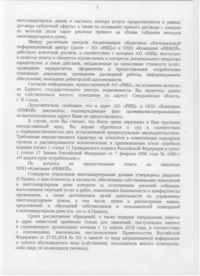 Решил побороться в протест квитанций от Рифея не по адресу и получил просто ИЗДЕВАТЕЛЬСКИЙ ответ. !!! Думаете, только Вы один получили такой издевательский ответ, у меня таких ответов уже штук 10 скопилось. Рифей крышуется правительством области и выше. Целая банда. Нарушаются все законы, даже УК, и все им сходит с рук. |
