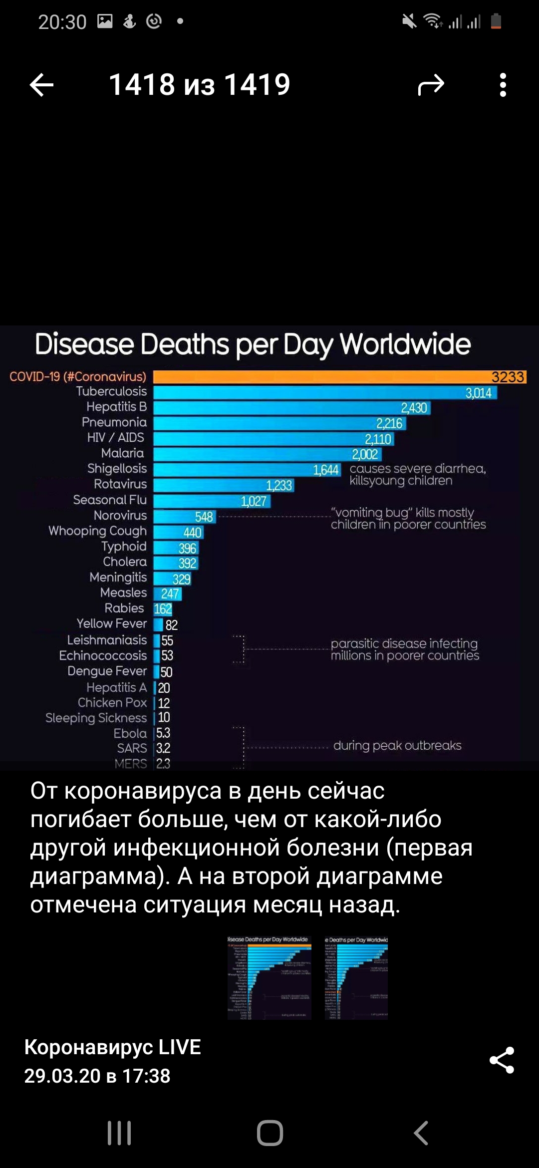 Власти назвали процент тяжелых больных коронавирусом моложе 40 лет Подробнее на РБК: https://www.rbc.ru/society/29/03/2020/5e808...andex.ru%2Fnews В Москве около 45% больных коронавирусом с тяжелым повреждением легких — это люди моложе 60 лет, 15% тяжелых пациентов приходятся на возрастную группу моложе 40 лет, сообщает столичный оперативный штаб по контролю и мониторингу ситуации с коронавирусной инфекцией. На искусственной вентиляции легких почти 40% пациентов младше 40 лет. Доля таких больных в возрасте до 60 лет составляет 64%. проценты немножко непонятные, лучше бы абсолютные числа привели сколько находятся на ИВЛ - непонятно вообще конечно это нехорошо, даже если человек после тяжелого состояния от вируса и выздоровеет, то выздоровление будет такое себе, качество жизни прежним у него уже не будет, а может и на инвалидность уйдет мне вообще непонятны люди призывающие отказаться от карантина, утверждающие что он надолго, Ухань уже выходит из карантина, случаи заболеваний есть, но это уже не похоже на эпидемию... также неверно, что все переболеем, в Ухани заболели не все вообще, чем отвественней мы подойдем к самоизоляции, тем быстрей все это закончится |