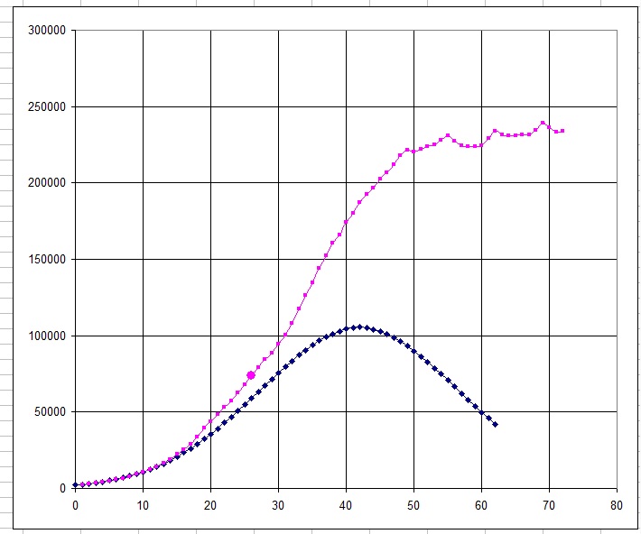 Если данные по Москве верны: каждый 7 имеет антитела, значит когда стали принимать меры, было уже поздно. Он как сезонный грипп распространился, и через 14-18 дней стал давать результаты. Кривая говорит о том, что выйти то мы вышли на максимум, но падать оно не собирается - то есть ограничительные меры не эффективны - люди всё равно заражаются. Разве, что в Москве сбили популяцию, да в Челябинске он сам сдох, потому что не смог дышать той гадостью, которую челяба выбрасывает в атмосферу. Удивительно, что не сдох не тагиле:) |