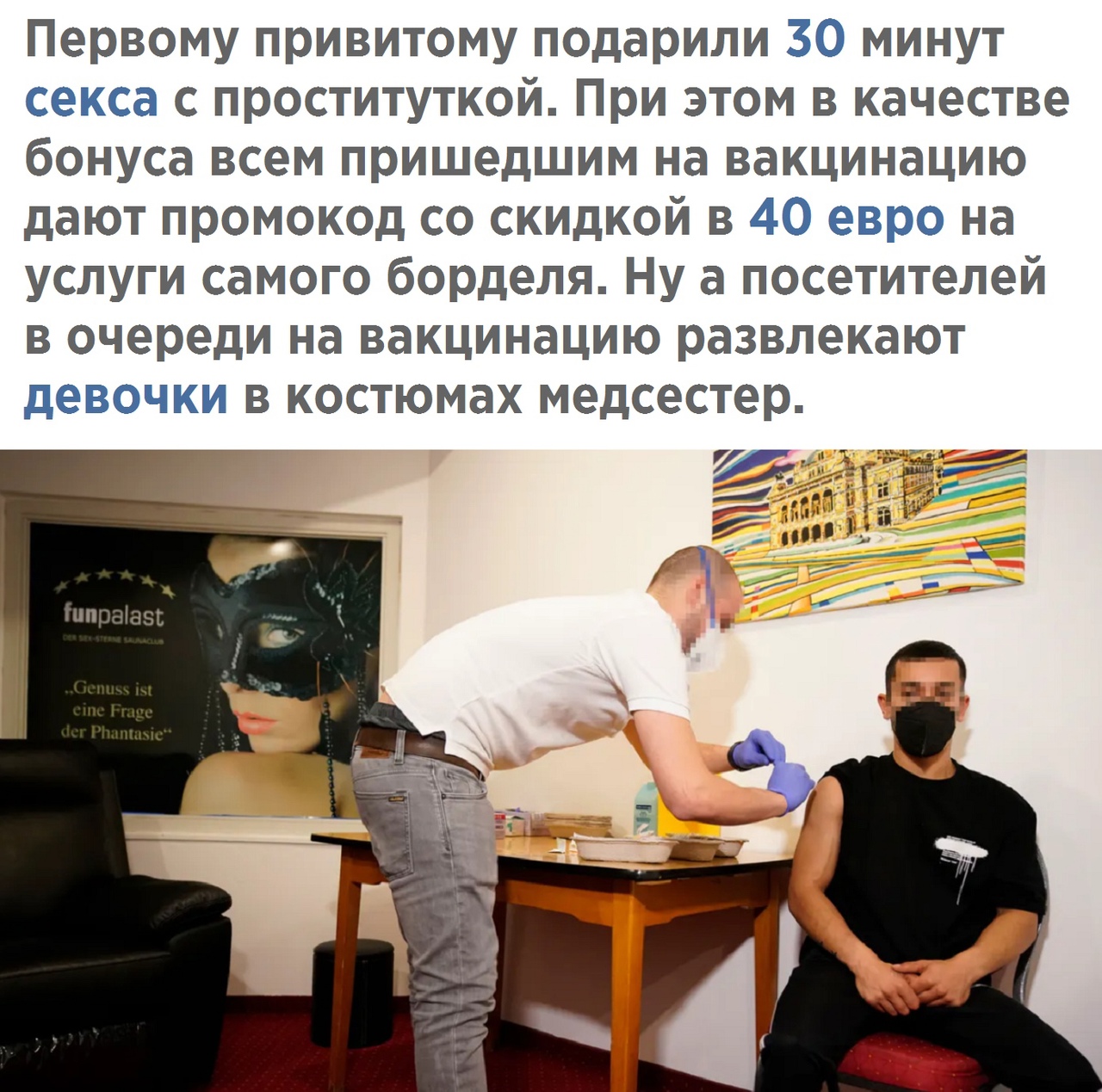 Вакцинация остается на усмотрение жителей. Комздрав Петербурга поправил Роспотребнадзор Ранее в Петербурге вышло постановление главного санитарного врача города Наталии Башкетовой об обязательной вакцинации от коронавируса ряда категорий граждан, в том числе жителей старше 60 лет и людей с хроническими заболеваниями. https://vk.com/news47rus?w=wall-24239266_553419 Конечно вакцинация добровольная - кто бы сомневался! Вот и Президент говорит, что она добровольная. Одна беда - губеры не слушают президента, так и давят со всех сторон. А тех кто говорит, что решения на самом верху принимаются, а губерам их просто копировать приказали - не верьте, онифсеврут. |