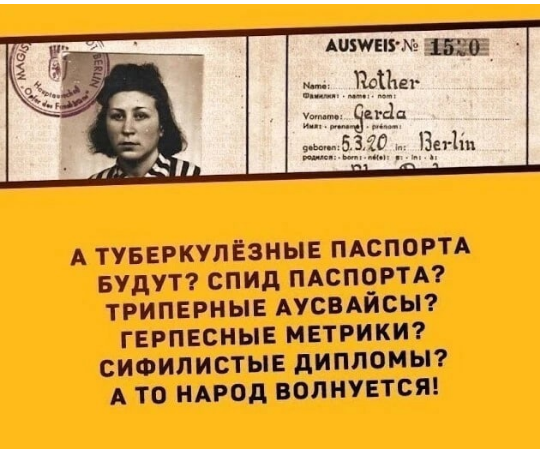 Спасибо за статью! Исчерпывающе! И наконец-то они уже совсем перестали скрывать свой дьявольский оскал. В их планах присвоить QR каждому, сделав как во времена фашизма, человека вещью. И министерство здравозахоронения они хотят наделить такой властью QR выдавать всем! Так что вывод- этот код не для сегрегации нужен, а для маркировки и потери прав! Это ещё страшнее сегоегации. Эти предатели народа хотят стать гауляйтерами. Такое уже практиковали фашисты налепливая номер на концлагерную форму. Только теперь номер в самой вакцине с цифровым следом. Цитата Мурашко. И Гинсбург уже проболтался или спецом сказал подтвердив слова Мурашко. Так что сейчас важно не допустить принятия этого закона, это все в руках граждан. Вообужитьсч ручкой и от руки писать как живой человек! Ссылки на группы Я давала. https://vk.com/video533798058_456239058 Все правильно сказано, жаль только , что не все это понимают. Куар -код используется для маркировки товара, это товарный знак, значит мы товар в глазах власти и нас можно продать, купить, как сейчас. Бросились прививаться ради куар - кода большинство, как будто ходят голые, голодные, если в кафе и ресторан не сходят, в музеи и т.д. А власть довольна. |