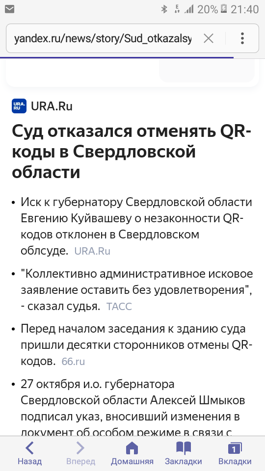 Вчера прилетел в Екб, захотел покушать на Вайнера в кафе.подошёл к дверям увидел табличку без кода гостей не обслуживаем.развернулся пошел в сторону Гринвича зашел в другое заведение и спокойно Представьте, что у вас появилась опухоль. Вы её вырежете? Или будете ждать, пока разрастётся? С кодами. Это только начало. Прогнётся народ, закрутят гайки по полной. Суд отказал в Свердловкой области в отмене кодов. Куйвашев издаёт указ о введении кодов в ВУЗах. Давайте подождём и жизнь заиграет новыми красками. Сообщение отредактировал (надежда) - 20.11.2021, 16:32 |