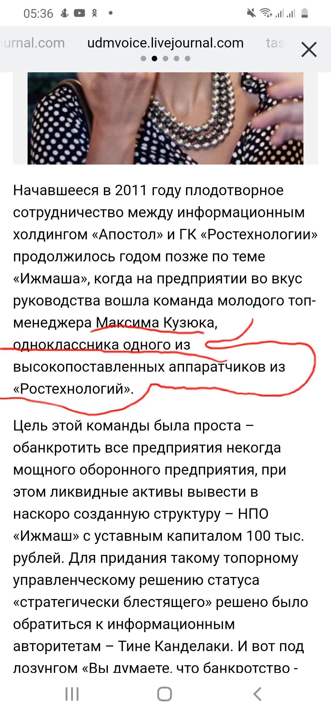 https://yandex.ru/turbo/s/udmvoice.livejour....com/77263.html А вот ещё интересненькое. Канделаки пиарила кузюка на ижмаше, но не вышло. Убрали его от туда, работники были крайне недовольны его "работой". В итоге было везде враньё, что ижмаш красавчеГ, а на деле у людей зп были 3-6 тыс. руб. В интервью ленте в мае 2012 года кузюк говорит о планах на 2013 год. Но в 2012 его убирают с ижмаша. А вот ещё скрин. Оказывается кузюк одноклассник одного из высокопоставленных чиновников ростехнологий. Сообщение отредактировал ZloVredina - 26.6.2020, 6:07 |