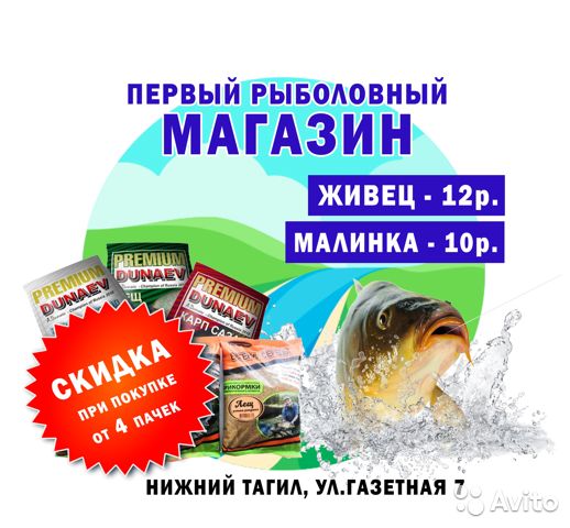 Рыболовные снасти в наличии и под заказ Зимний и летний ассортимент доставка от 1 дня. Любые бренды отличные цены, найдете дешевле сделаем скидку. ___________________________ Живая насадка Мотыль крупный 3.5 см 40 рублей за 10 гр Мотыль алый 3 см 30 рублей за 10 гр Мотыль кормовой 50 гр 70 р Опарыш зима под заказ от литра 1200 литр Мормыш стакан 40 р Сухари 800 гр Стандарт 79 р Перец 79 р Чеснок 79 р Анис 79 р Мормыш 79 р Семечка 79 р Красный 110 р ______________________________ Любые объемы животины, возможна поставка живца сорога, пискарь 12 рублей за хвост Газетная 7 Нижний Тагил вход с торца магнит "косметик" Для заказа звоните 89581373420 |