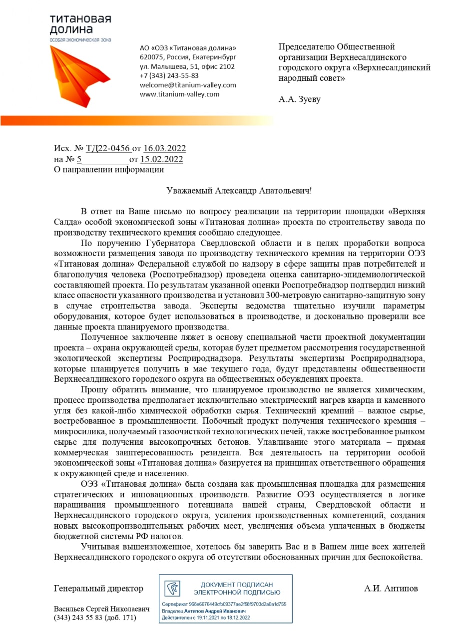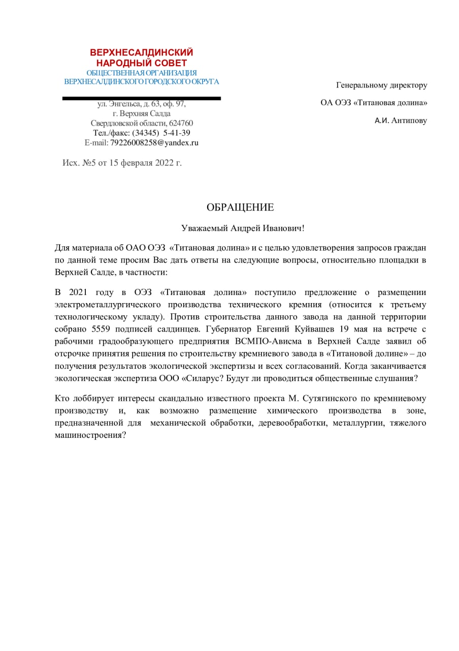 В Верхней Салде пройдут общественные слушания по кремниевому заводу Спустя год представители омской компании «Силарус» вновь надумали пообщаться с жителями Верхней Салды о проекте строительства кремниевого завода в «Титановой долине». Дату и время слушаний пока не назначили. Подробнее внутри.