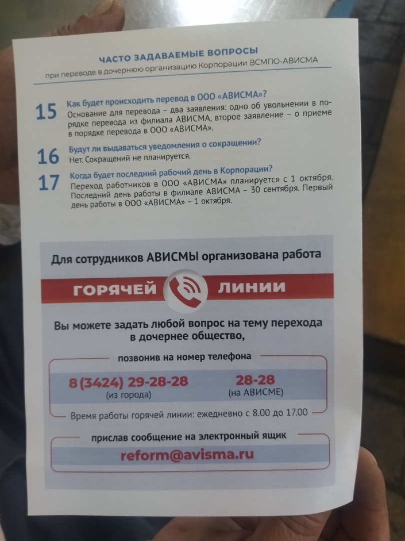 Приведите ваши доказательства,что Ависма пытается отделится. Почему отделиться? Всего лишь сменить форму собственности для ухода от лишних издержек в форме налогов, ну и от лишних обязательств в отношении работников если что. Более того они все локальные акты, профсоюз, льготы, стаж и т д сохраняют как будто ничего не меняется для работника. Ещё раз повторюсь, для работника кроме новой записи в трудовой книжке и отсутствия гарантий в случае форс мажора ничего не изменится. Кстати, неплохая защита для предприятия в случае чего. Можно просто избавиться от работников и отвечать только своим имуществом, которого в собственности может и не быть. Предположу что всё имуществао будет арендовано и расплачиваться это ООО будет своим уставным капиталом, который может составить 10000 рублей |