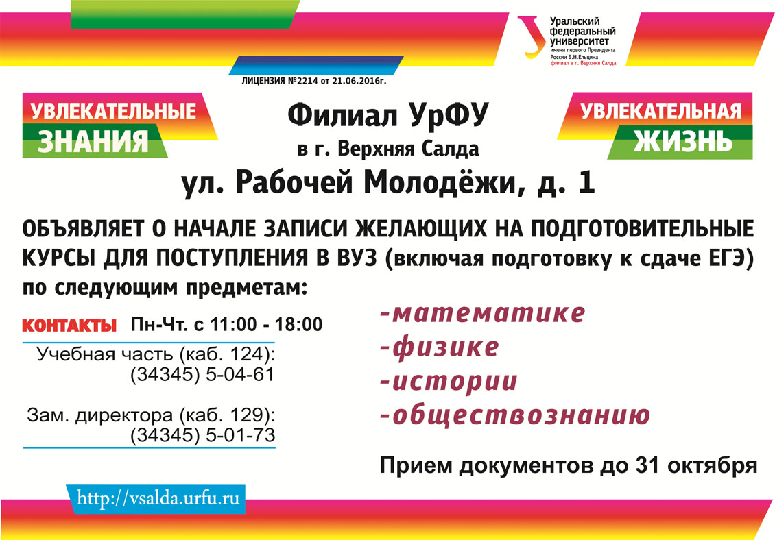 Добрый вечер, я просто не владею информацией, поэтому решила спросить тут. Будет ли в 2018 году набор на бюджетное дневное отделение, какие специальности?интересуют технические. Сколько лет участся именно в В.Салде, все 4 года или через пару лет в Екб? Если где-то есть информация, то пожалуйста дайте ссылку. Сын начал учиться у вас на подготовительных курсах, не планируете ли вы между делом рассказать все прелести вашего института? А то рвутся далеко от дома, плохо понимая даже куда конкретно хотят. Заранее спасибо.