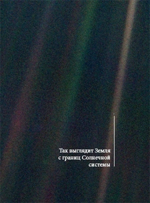Это знаменитая фотография, хотя на ней ничего и не видно. Ее название — «Бледная голубая точка». Примерно так нашу планету смогут увидеть инопланетяне Поставить себя на место братьев по разуму людям помог аппарат «Вояджер-1», который стал первым рукотворным объектом, покинувшим Солнечную систему. Аппараты-близнецы «Вояджер-1» и «Вояджер-2» были запущены в 1977 году. Они исследовали объекты Солнечной системы и выполнили задачи настолько успешно, что ученые продлили их миссию. Одним из заданий, которое астрономы дали «Вояджерам», стала съемка Земли из космоса. Идею сфотографировать планету предложил ученый и популяризатор науки Карл Саган. Он настаивал, что, хотя научной ценности у снимка не будет, его общечеловеческая значимость очень велика. «Вояджер-1» прицелился и в промежуток между 14 февраля и 6 июня 1990 года сделал около 60 фотографий, одна из которых оказалась удачной. На момент съемки аппарат был на расстоянии шести миллиардов километров от Земли. Даже Нептун — последняя планета нашей системы — находится не так далеко от Солнца. |