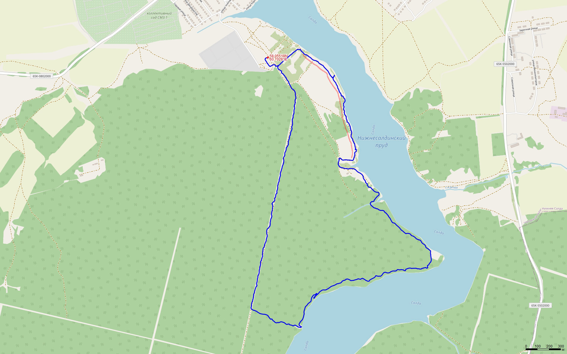 Основная часть следующего зимнего маршрута проходит по льду нижнесалдинского пруда. От дороги ведущей в Нелобу, ближе к концу подъёма от первой речки, есть тропа ведущая через лес к пруду. Несколько раз мы бывали там зимой, она обычно в хорошем состоянии, её протаптывают рыбаки. На рисунке она выделена жёлтым цветом. После выхода на лёд всё зависит от наличия и расположения снегоходных и автомобильных следов на льду. По противоположному берегу пруда обычно ездят на снегоходах, и при желании можно идти по накатанному следу. Я прошел по нему на участке помеченном красной линией. Если не ходить на противоположный берег, лучше найти подходящую колею ближе к правому берегу и идти по ней в сторону города и смотреть вправо, там обычно к пруду в нескольких местах подъезжают на снегоходах и внедорожниках рыбаки. По одной из этих дорожек можно выйти обратно на нелобскую дорогу. Длина показанного маршрута составляет примерно 4,5 км. Но идти большую часть пути приходится по не слишком утоптанному снегу, и поэтому лучше выбирать высокую обувь. Маршрут весьма привлекателен с эстетической точки зрения, идти приходится и по густому лесу и по льду и по полям. Со льда виден город. GPS трек здесь: https://disk.yandex.ru/d/Sa73yy727OoiqA Сообщение отредактировал Romantic - 19.12.2022, 13:18 -------------------- Зачарованно глядит