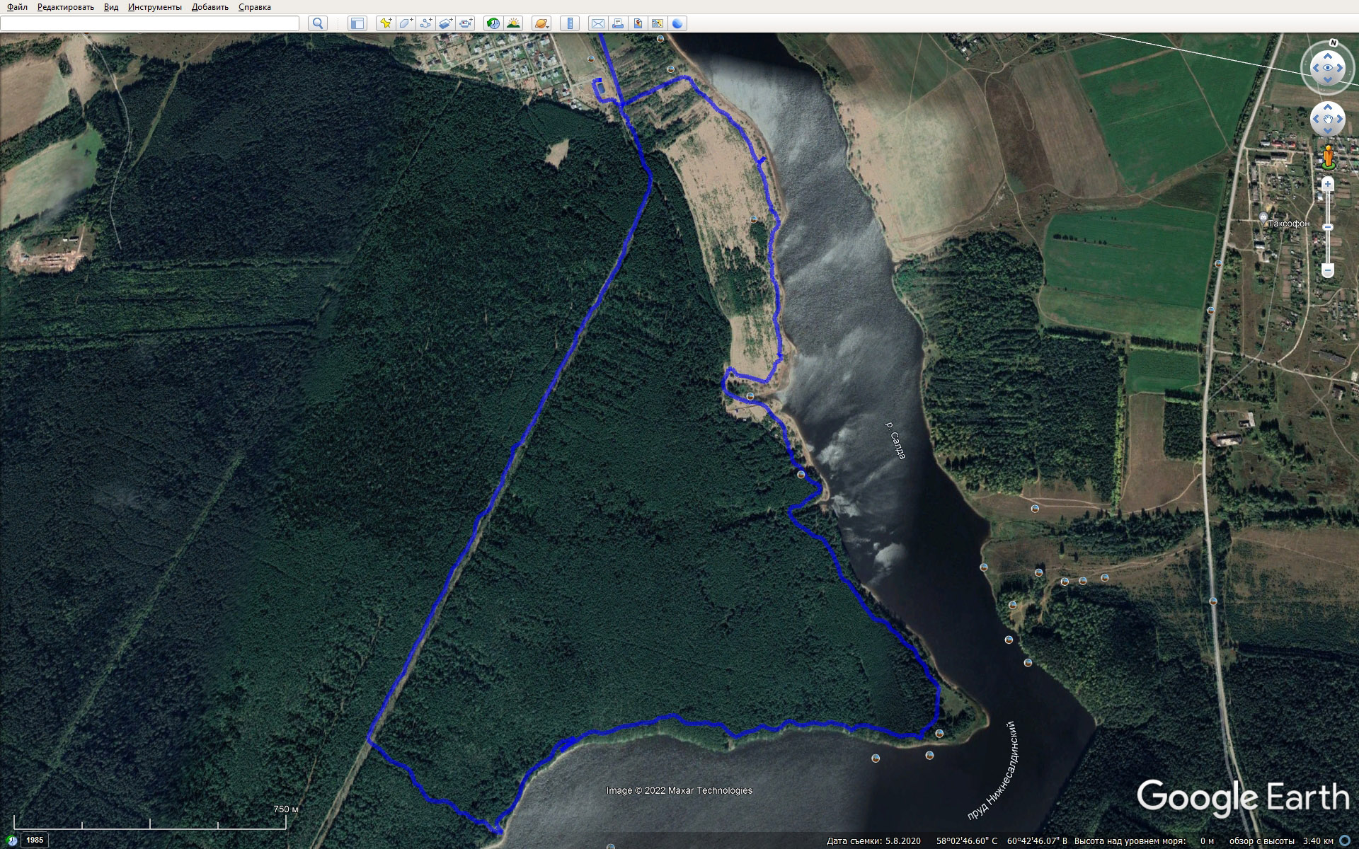 Маршрут в окрестностях Нелобы протяженностью около 6 км. Красным кружком помечено место старта. Там можно оставить машину и идти в лес по дороге по направлению к затопленным кварцевым карьерам. Далее дорога идёт между самым большим карьером и рекой, затем вдоль берега реки до брода. Красной линией помечен мало пригодный для прогулок участок маршрута дальше брода, прибережные заросли и прочее непотребство. Там где кончается красная линия мы поднялись на высокий берег, по которому идёт неплохая тропа, откуда она тянется я не знаю. Далее маршрут проходит по хорошей тропе с живописными видами вдоль берега, до устья 3-й речки, дойдя до которого, нужно повернуть направо и идти по лесной дороге до дороги на Нелобу. Не исключаю, что есть более короткий путь. Трек здесь: https://disk.yandex.ru/d/QZRjll5XT3AHTA Сообщение отредактировал Romantic - 30.10.2022, 0:57 -------------------- Зачарованно глядит