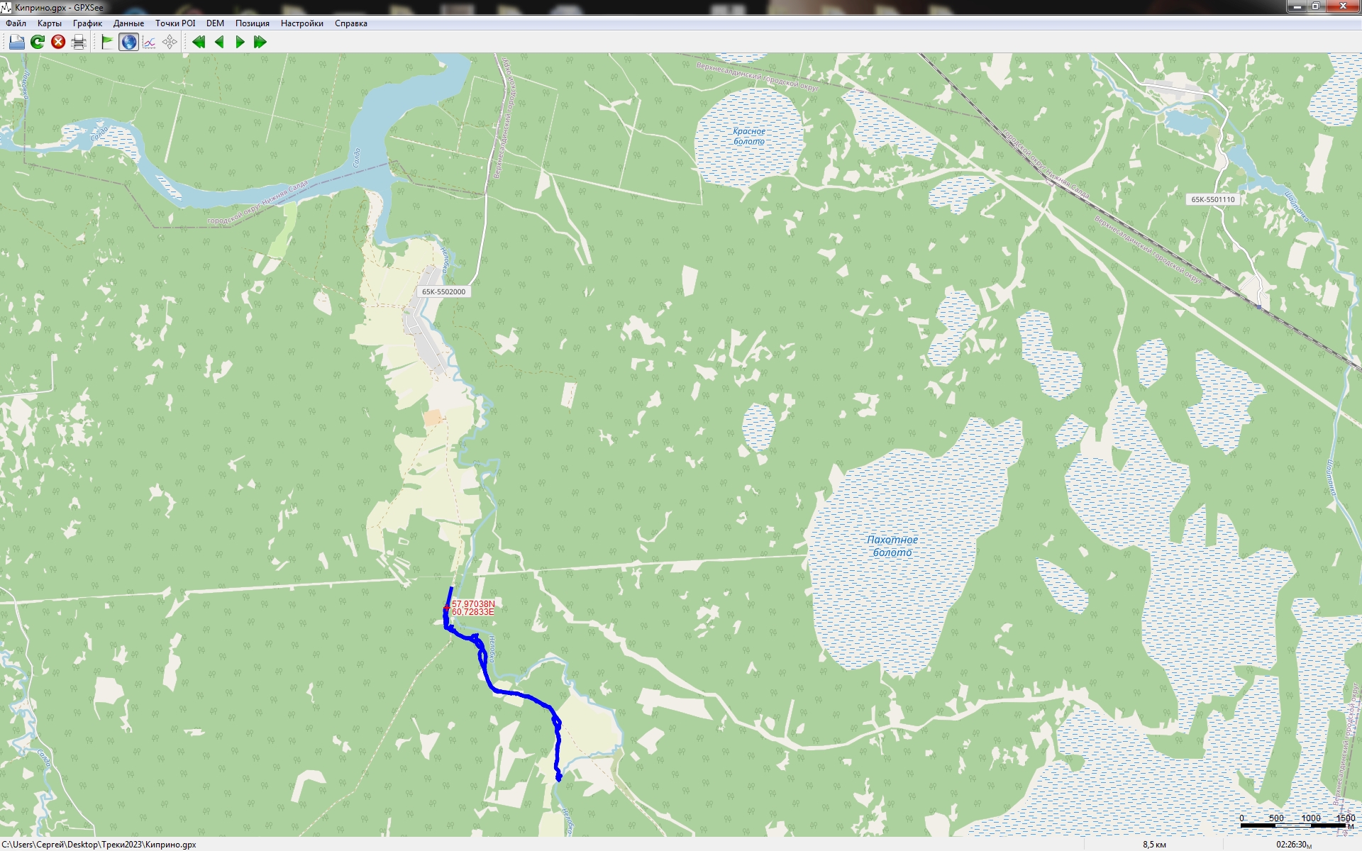 Небольшое путешествие по хорошо накатанному следу от снегохода с балакинской дороги через реку Салду. Маршрут пройден 19.03.23. протяженность маршрута около 9км. Первый брод хорошо накатан снегоходами, лед еще крепкий. Идя обратно переходили реку по целине, под снегом вода, Сразу у противоположного (правого) берега были колеи от какой-то машины, по ним вышли обратно на балакинскую дорогу. Здесь фото с маршрута: http://forum.vsalde.ru/index.php?showtopic...t&p=2958175 GPS трек здесь: https://disk.yandex.ru/d/2Ztac6EvcOjNiw Сообщение отредактировал Romantic - 19.3.2023, 22:12 -------------------- Зачарованно глядит