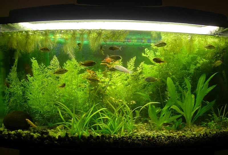 В сторону цихлид смотрю от части потому что это проще: любой грунт , любые камни/коряги, любой свет )))) А с травничком много нюансов Ну с цихлидами тоже не мало хлопот так то... Тем более хорошей рыбы и в Екатеринбурге трудно найти, разве что Вадим из Челябинска присылает иногда, либо Уфа. В Тагиле точно не вариант, все там зажатые дворняжки. Со стандартным светом я бы не стал ставить лампы специальные, их лучше добавлять к белому, опять же с хорошим светом без браги (СО2) не совсем хорошо... Простенькая травка ведь тоже неплохой вариант, в малявочнике у меня росла будь здоров (на фото). P.S. Камни с пруда в травник не пойдут, Ca+Fe там лишние, уксус не покажет, только осадочный известняк он растворит. -------------------- Кому то может я не нравлюсь, идите в ОХО, не исправлюсь....