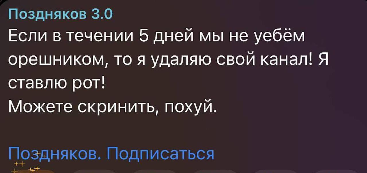 Ну и где наша "страшная Мстя"? Похоже, все советские Вундер-вафли кончились. Ни "Боярышников" тебе, ни "Кокошников". Придется попотеть Пометам и "Привед Медведу". Поработать ротиками - уничтожая проклятых Наци-нарко-геев орально. Какой-то z-блогер военкор орал с пеной у рта, что если через пять дней главнокомандующий не вдарит по врагам мстительным огромным кулаком, то этот блогер свой канал удалит и даже свою ротовую полость на это ставил. Вангую, что этот блогер особо и не нравился ладимладимычу. |