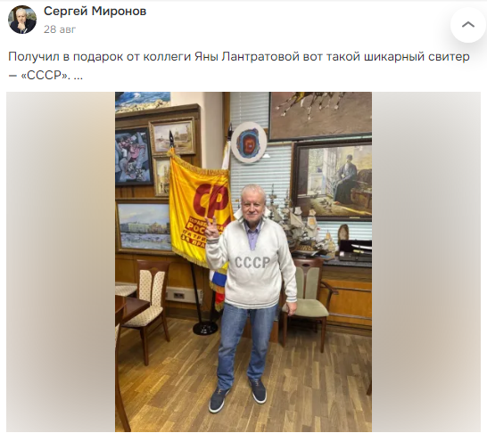 Не кинуть марковку... А пообещать кинуть марковку... СР позиционирует себя на политической сцене, как очень слабая партия, после того, как Сергей Миронов не стал выдвигать свою кандидатуру, и других однопартийцев на прошедших президентских выборах. Ныне покойный ВВЖ - ЛДПР и КПРФ всегда выдвигали своих кандидатов, независимо от того выиграют они на выборах, или нет. Здоровье у Сергея Михалыча не позволяет совершить 25-й прыжок, единоросы очень сильно ему потрепали нервы и подорвали здоровье. Сообщение отредактировал Ivan Sherbacov - 18.9.2025, 21:45 |