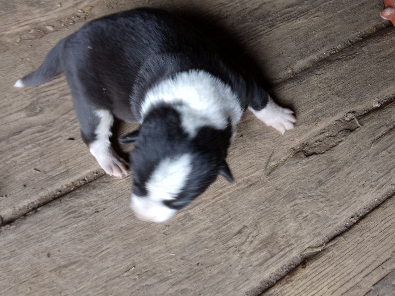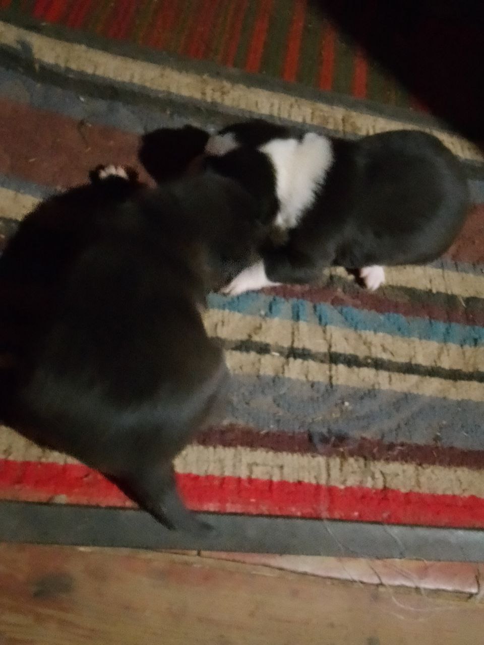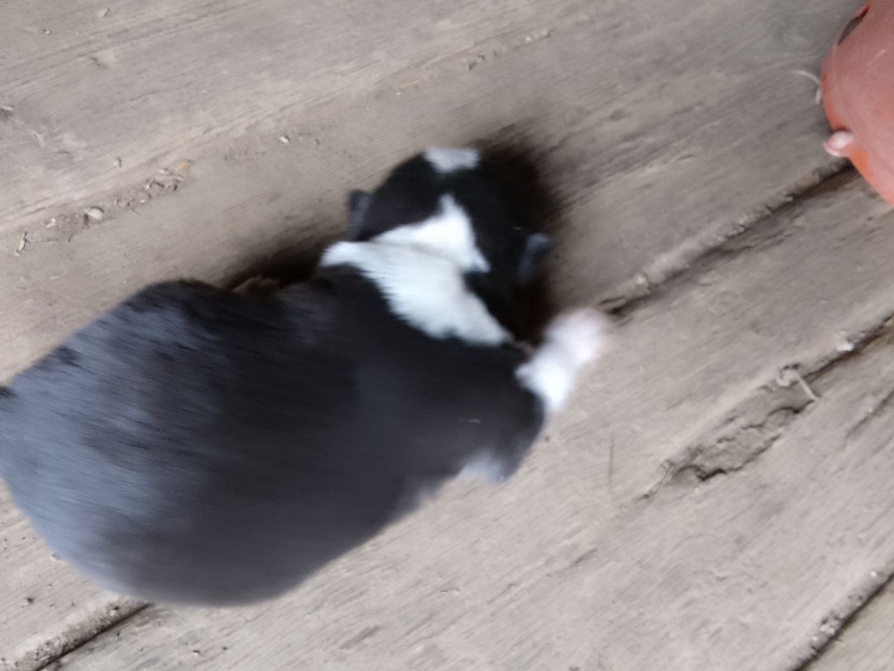 Щеночек подрос, ему уже 1 месяц. Знает туалет, кушает сам.