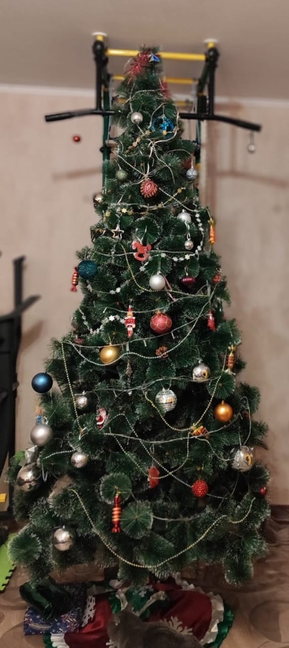 Продаём ёлку б/у (без игрушек и гирлянд). 800 рублей. Высота ёлки 2,3 метра. 8 рядов крепления веток. Два нижних ряда крепятся на хомутах (лопнули крепежные кольца и часть веток приходится дополнительно подвязывать). Как подвязаны нижние ветки видно на фото (вернее не видно, что они подвязаны). тел. +7(34345)62684