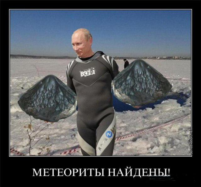 А метеорит тем временем начинает небылицами обрастать. Как вам "утка" очередная, что кусок метеорита в 1 СМ пробил дыру во льду озера аж в 8 МЕТРОВ диаметром? дыру видел, знакомый в челябе фоткал, а откуда инфа что метеорит 1 см? хотя с такой температурой и на такой скорости немудрено. -------------------- да пребудет с вами пиво!